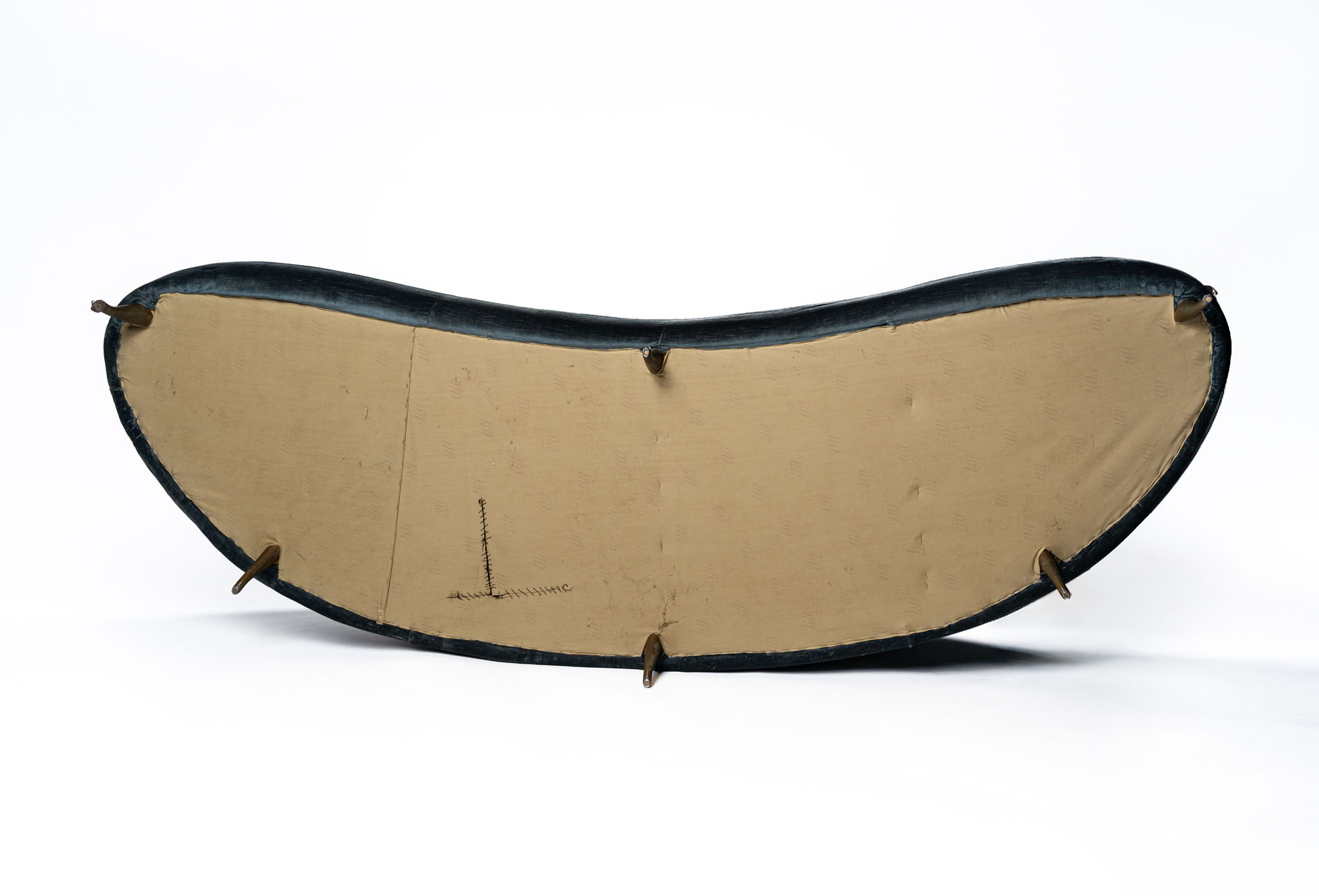 Divano con struttura in legno, piedi in alluminio pressofuso dorato e rivestimento in velluto. rivestimento interamente originale, produzione I.S.A., Italia, 1950 circa