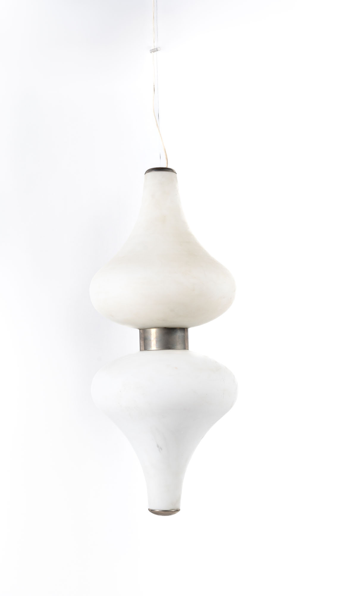 Struttura in ottone con diffusori in vetro opalino, produzione Stilnovo, Italia, 1960 circa