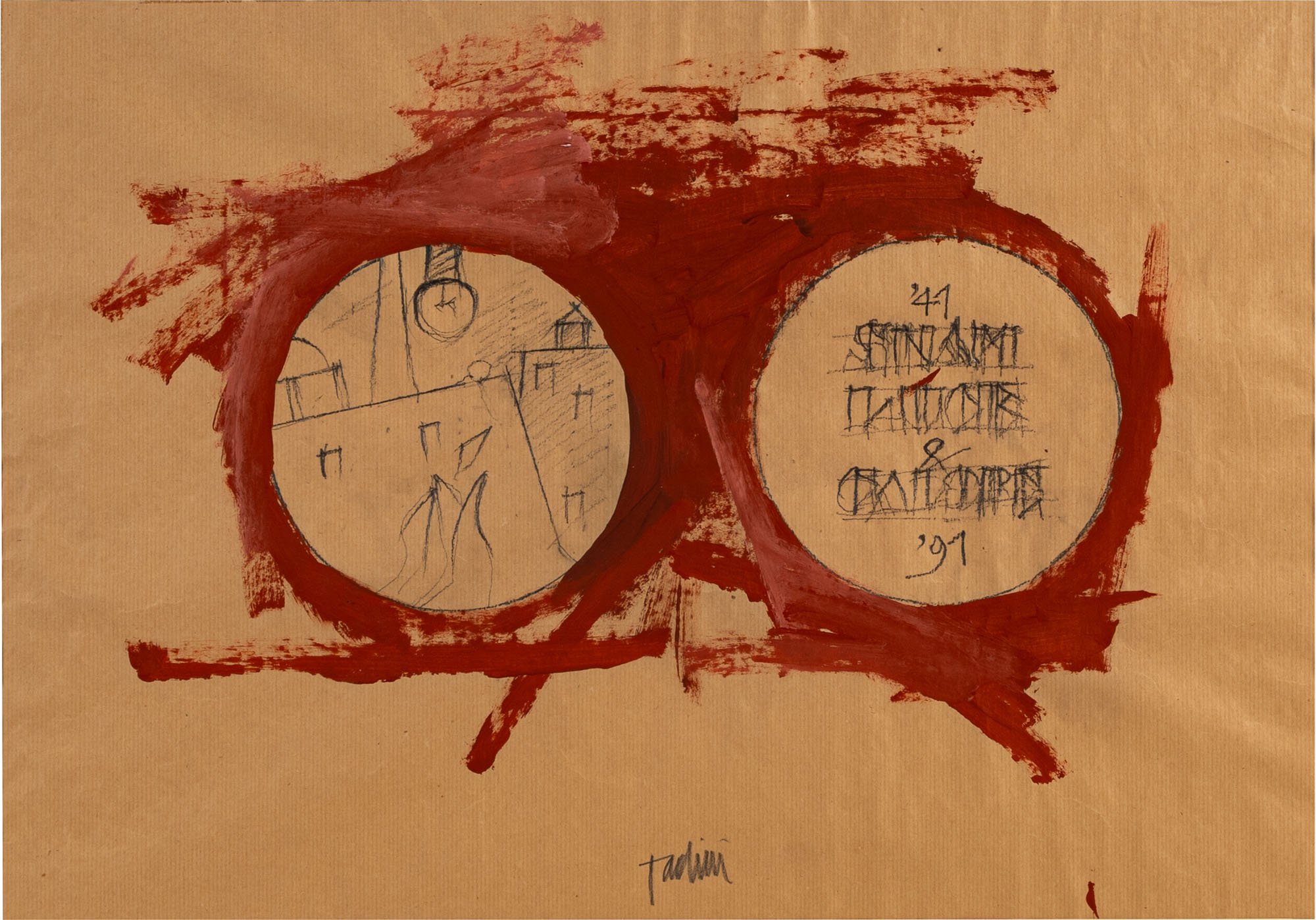 Tecnica mista su carta, bozzetto realizzato per il cinquantesimo anniversario dell'azienda Snam, Milano
