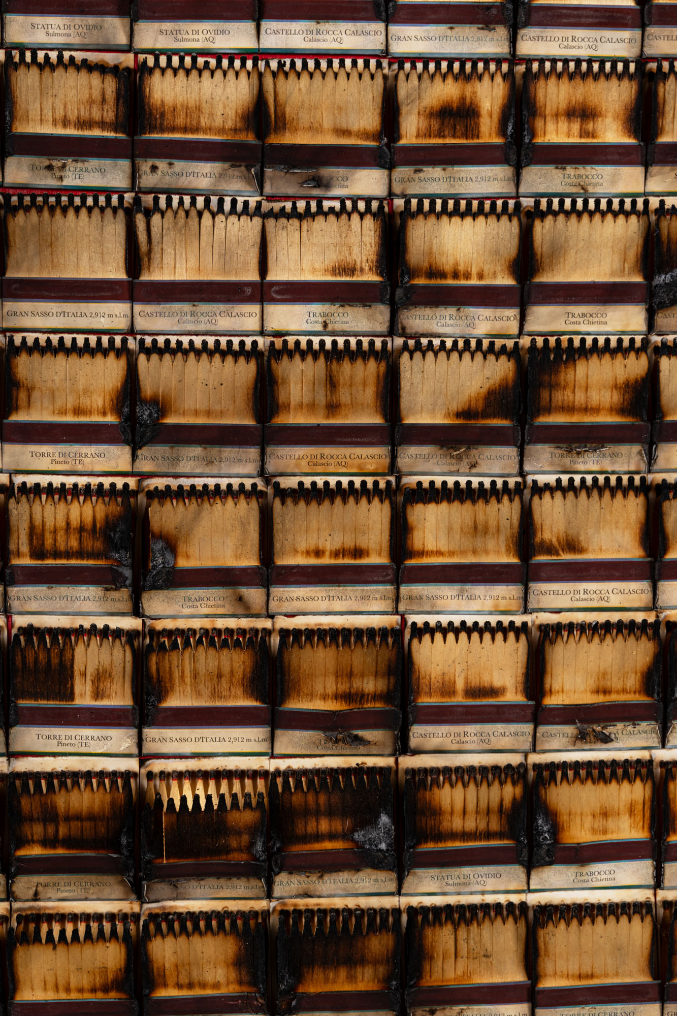 Fiammiferi bruciati applicati su tavola