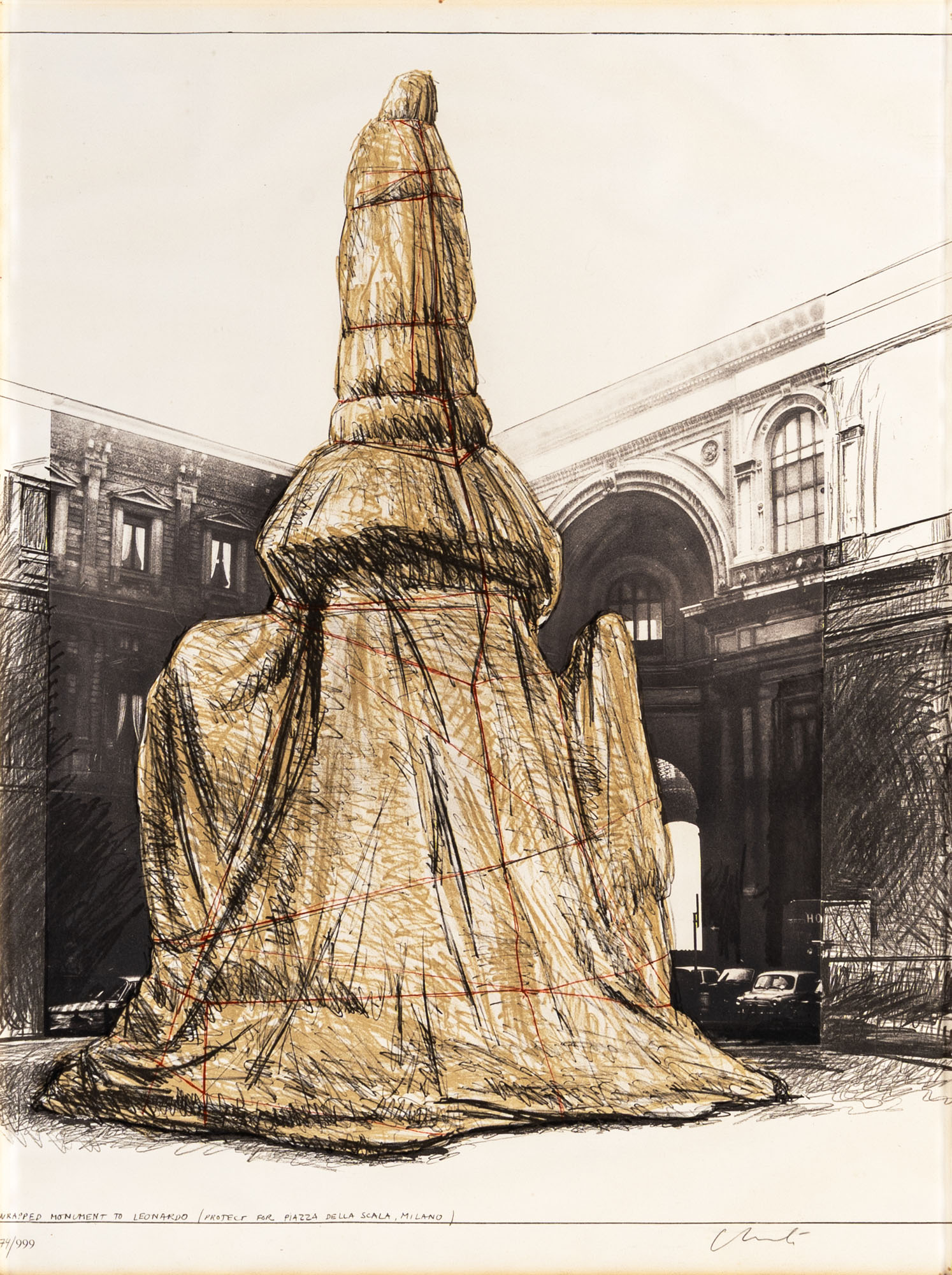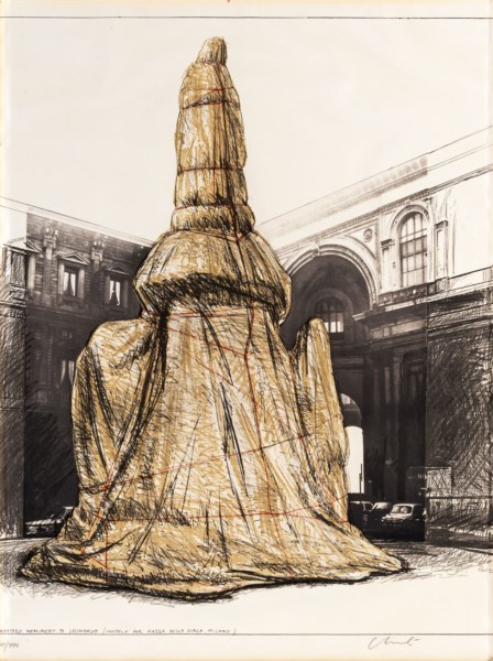 Wrapped monument to Leonardo (project for Piazza della Scala, Milano)