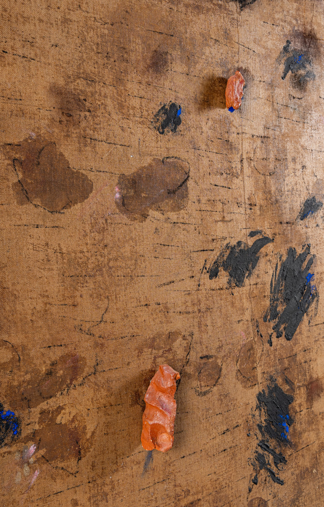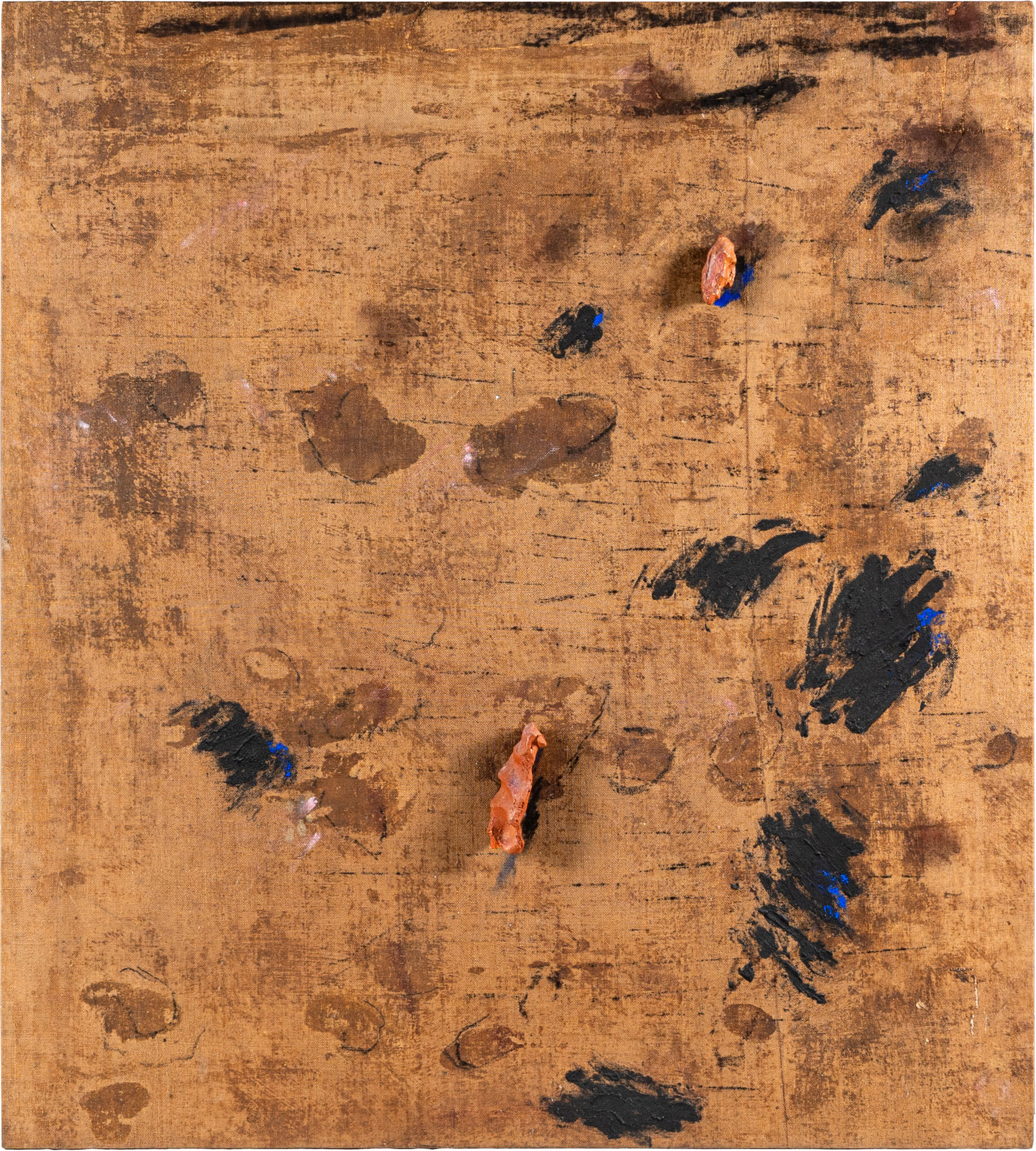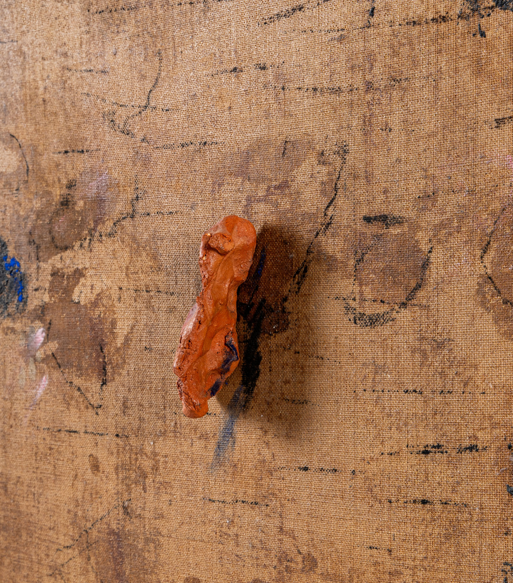 Tecnica mista su tela applicata su tavola, con applicazioni in terracotta