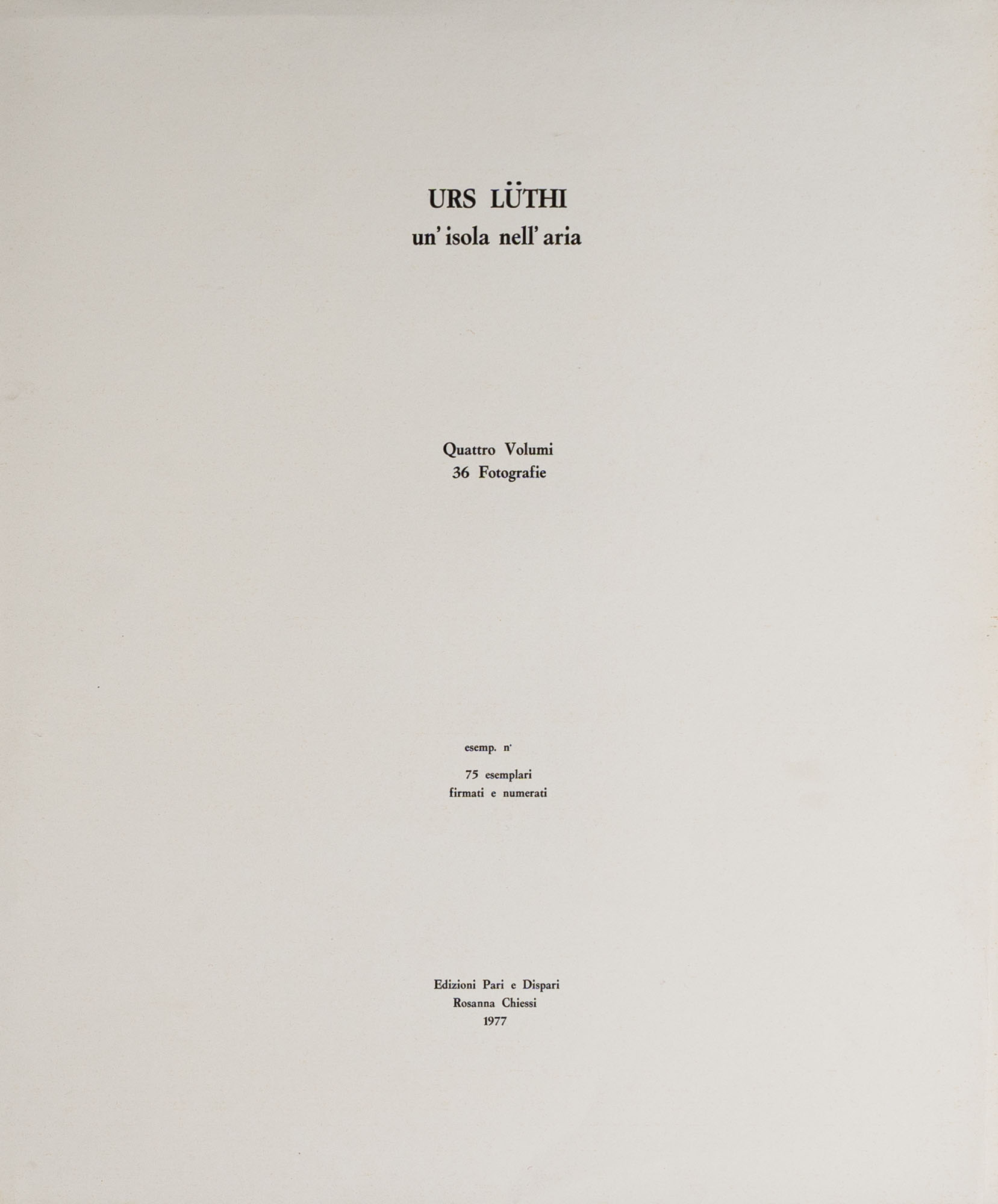 Cartella contenente 36 stampe alla gelatina ai sali d'argento applicate su cartoncino e passe-partout, es. 6/75, Edizione a cura di Pari & Dispari, Rosanna Chiessi e Peppe Morra, in collaborazione con Francesco Conz, Reggio Emilia