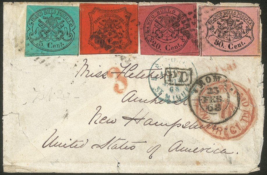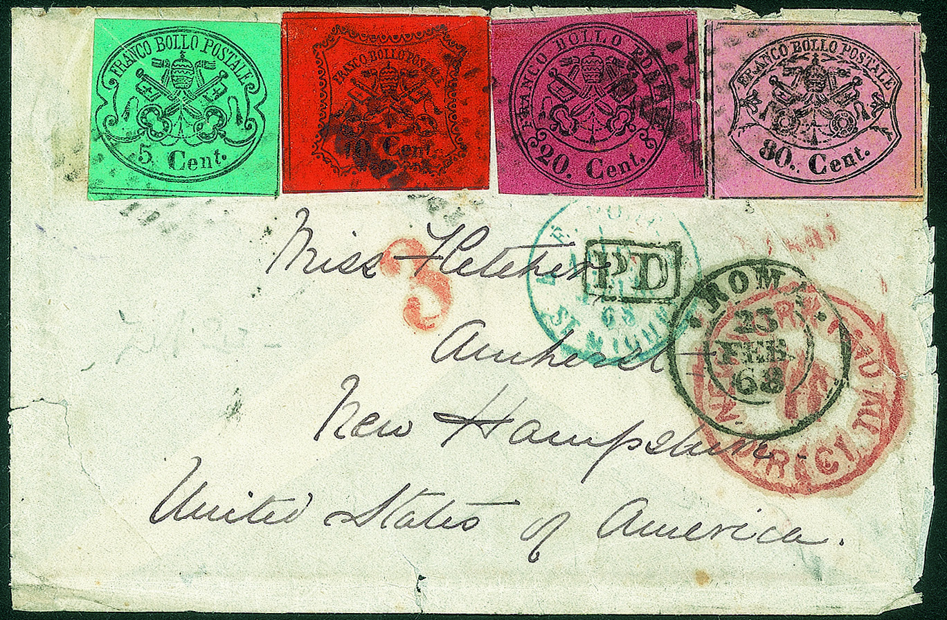 Antichi Stati Italiani - Stato pontificio - Bustina con affrancatura quadricolore