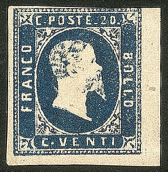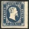 Antichi Stati Italiani - Sardegna - 1851 - 20 cent azzurro scuro (2b cat.28000)