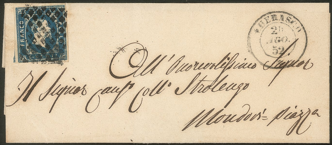 Antichi Stati Italiani - Sardegna - Letterina affrancata con 20 cent azzurro (2)