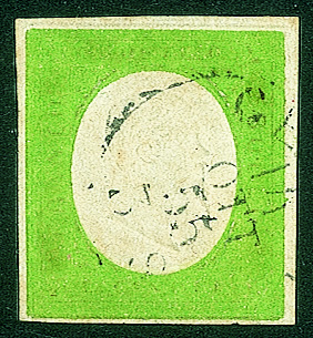 Antichi Stati Italiani - Sardegna - 1854 - 5 cent verde giallo con doppia impronta a secco (7f cat.3500)