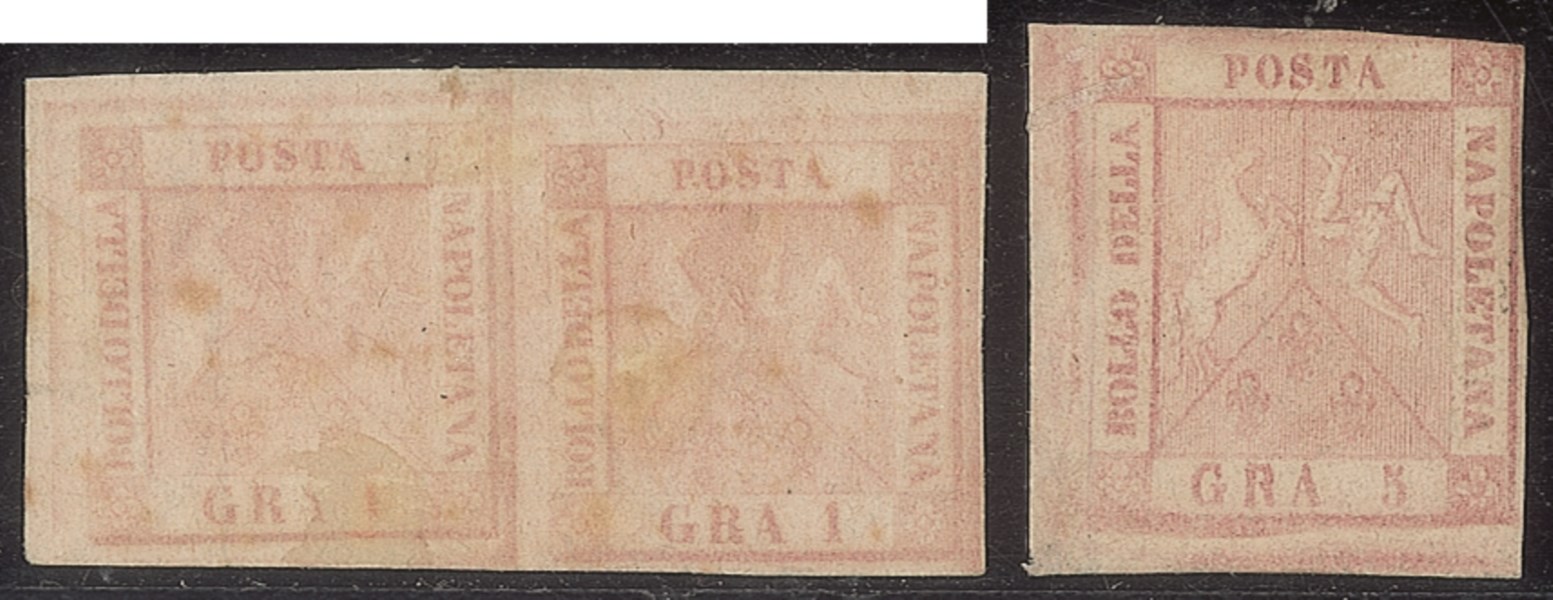 Antichi Stati Italiani - Napoli - 1858 - Lotto formato da una coppia orizzontale 1 gr. rosa chiaro