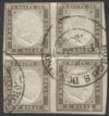 Blocco di quattro del 10 cent grigio brunastro - Borgo S. Donnino - PROBABILMENTE UNICO - Em.D + Oliva + ED + cert. Raubaudi - (14Ae)