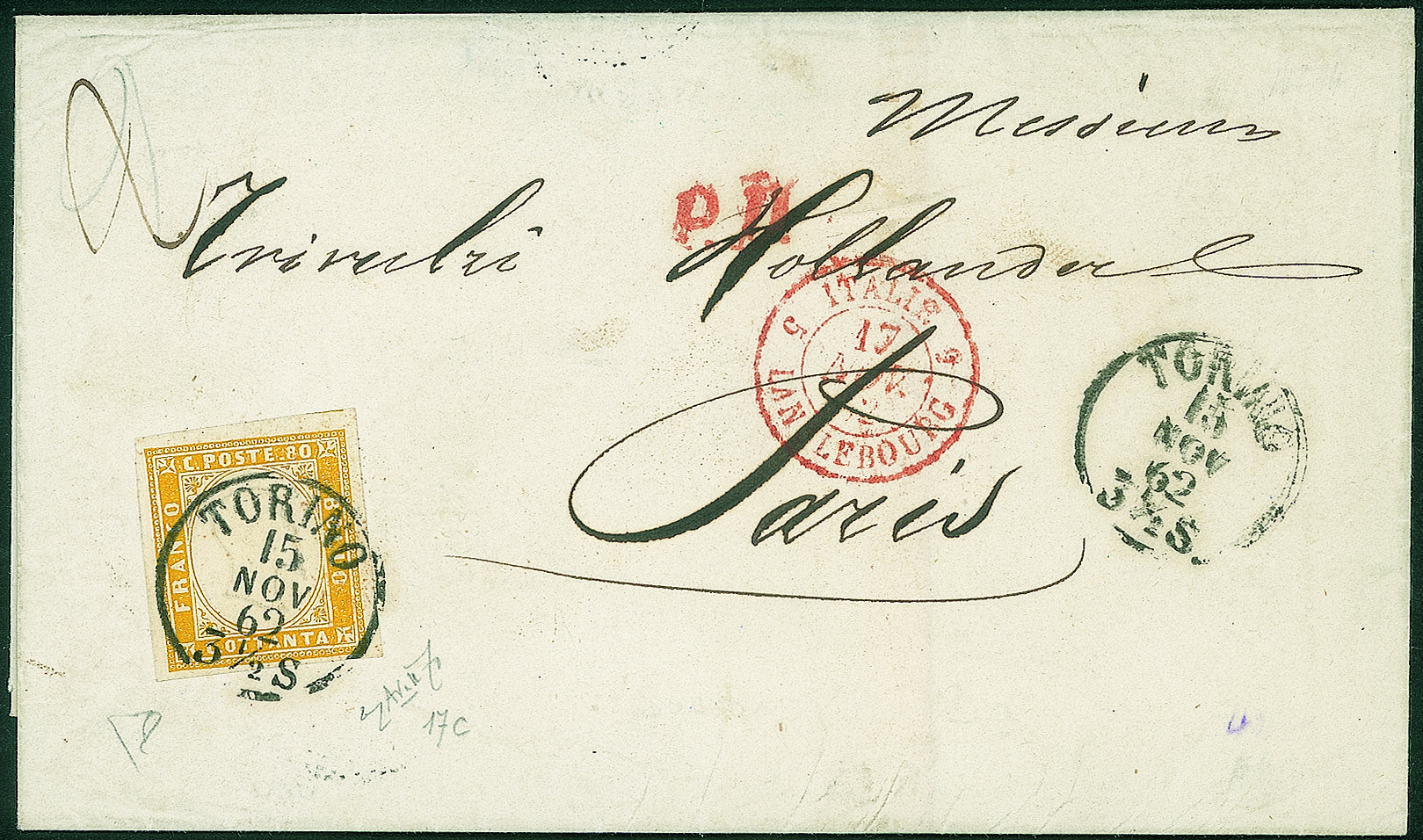 Isolato da Torino 15 NOV 62 per Parigi - cert. Enzo Diena