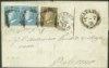 Affrancata con coppia del 2 grana azzurro smorto I tavola carta di Napoli + 1 grano verde oliva chiaro III tavola (6e + 5) per Palermo - cert. Raybaudi Luigi + Maurizio