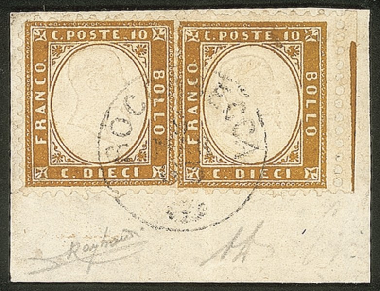 Regno - Vittorio Emanuele II - 1862 - due esemplari del 10 cent bistro giallastro (1 + 1 lf)