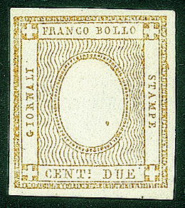 2 cent per stampati giallo (10c-eb cat.1500) senza la cifra - gomma originale - cert. Colla