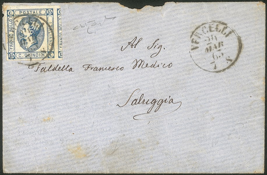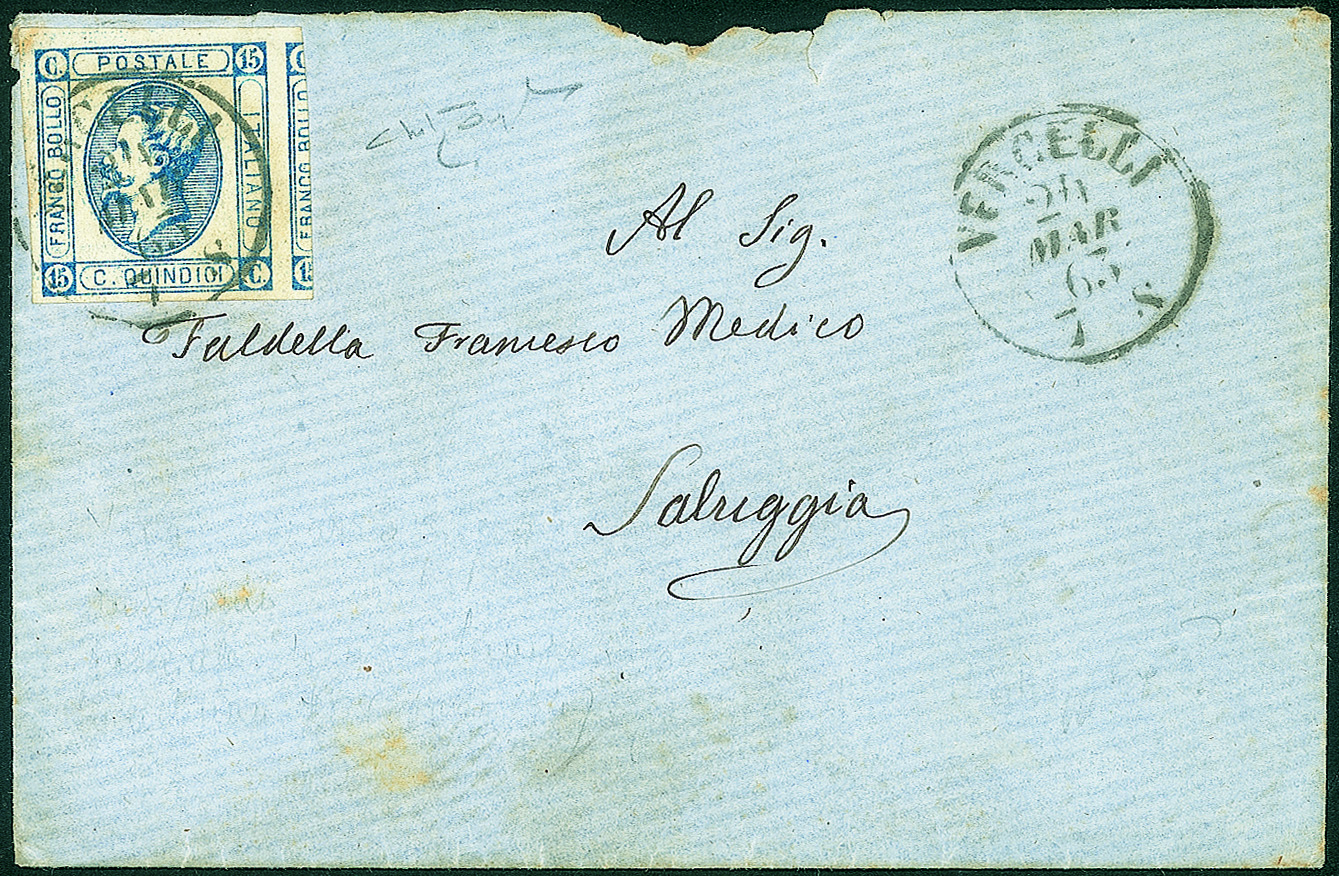 Regno - Vittorio Emanuele II - Bustina affrancata con 15 cent litografico