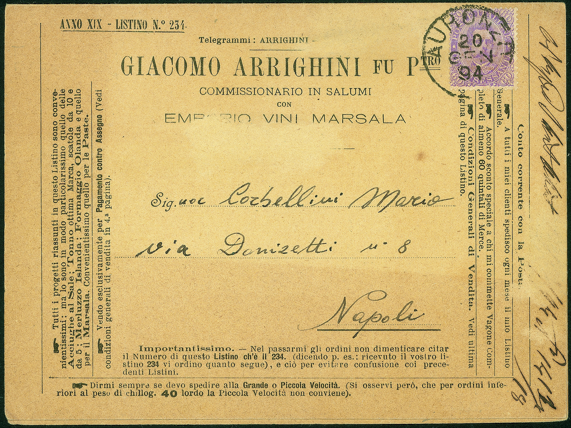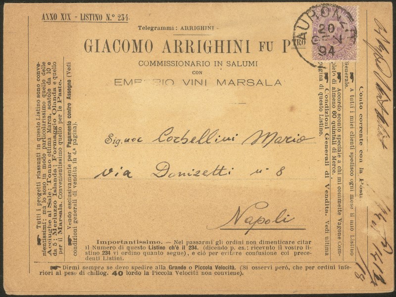Regno - Umberto I - Listino affrancato per triplo porto con 60 cent violetto Umberto (47 cat.950)