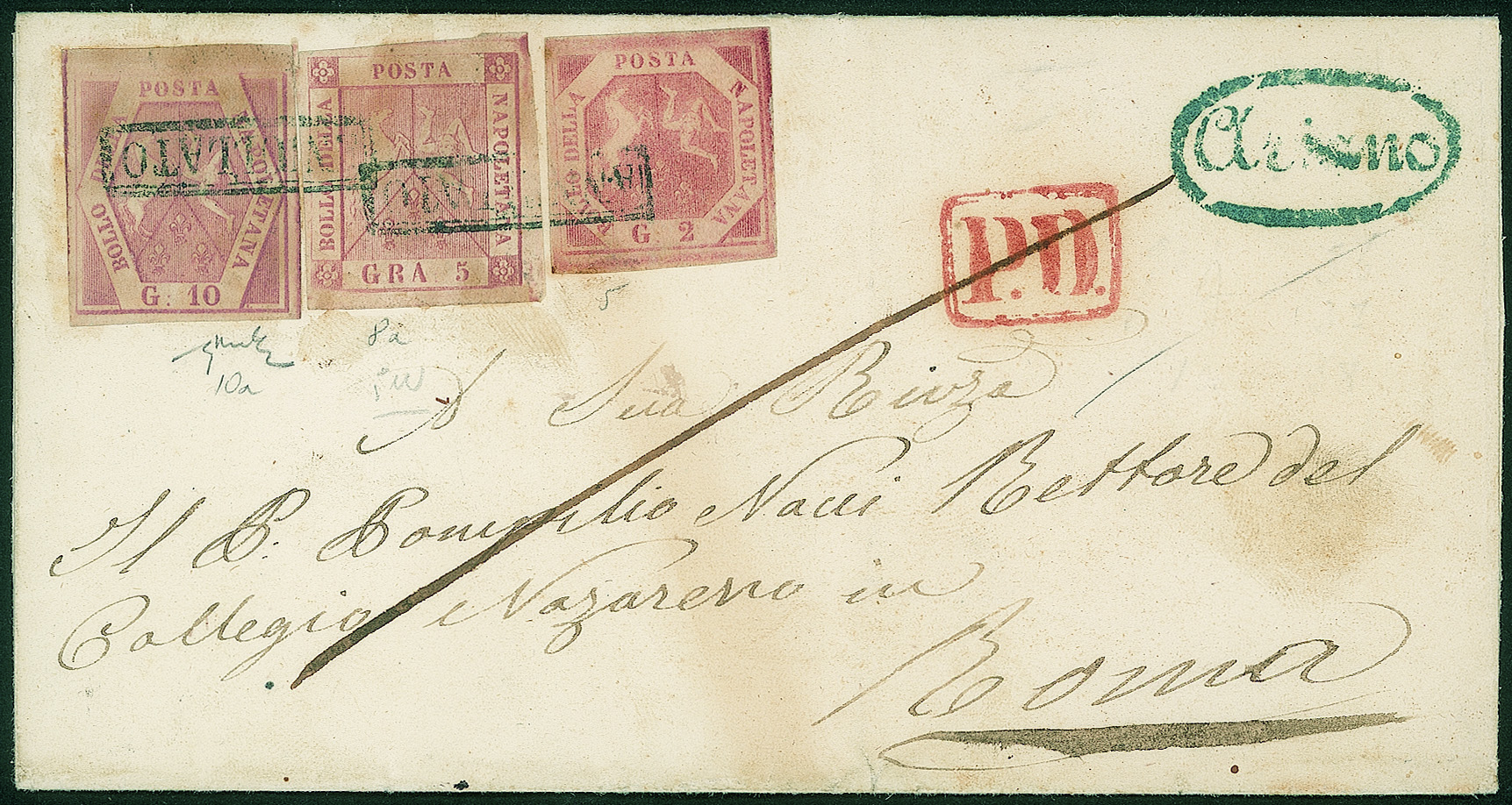 Antichi Stati Italiani - Napoli - Busta affrancata con 2+5+10 grana (5+8+10a)