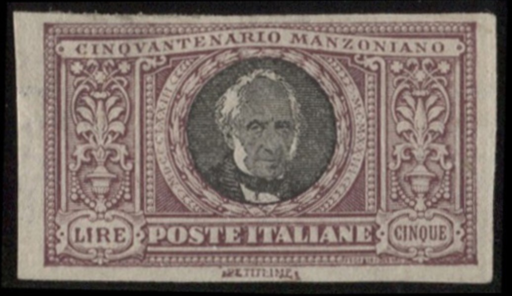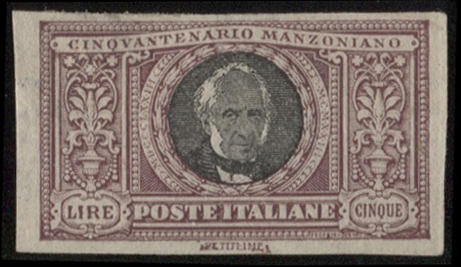 1923 Regno - Manzoni 5 lire non dentellato con buoni margini - cert- Diena - (156d)