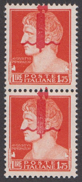 1944 Fascetti - Saggi - 1,25 lire coppia verticale con fascio a cavallo (pos. 81/91) - solo dieci coppie possibili nel foglio - gomma originale integra - (P21bb)