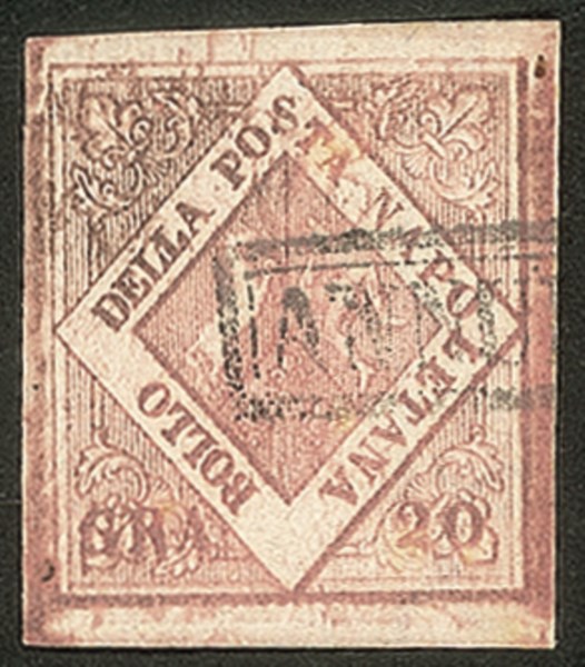 Antichi Stati Italiani - Napoli - 1858 - 20 gr. rosa brunastro 1a Tavola (12 cat. 1.350)