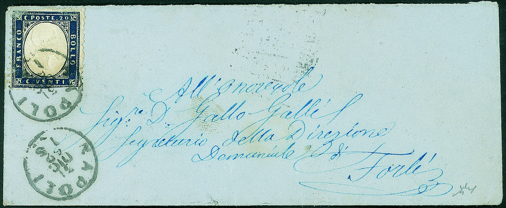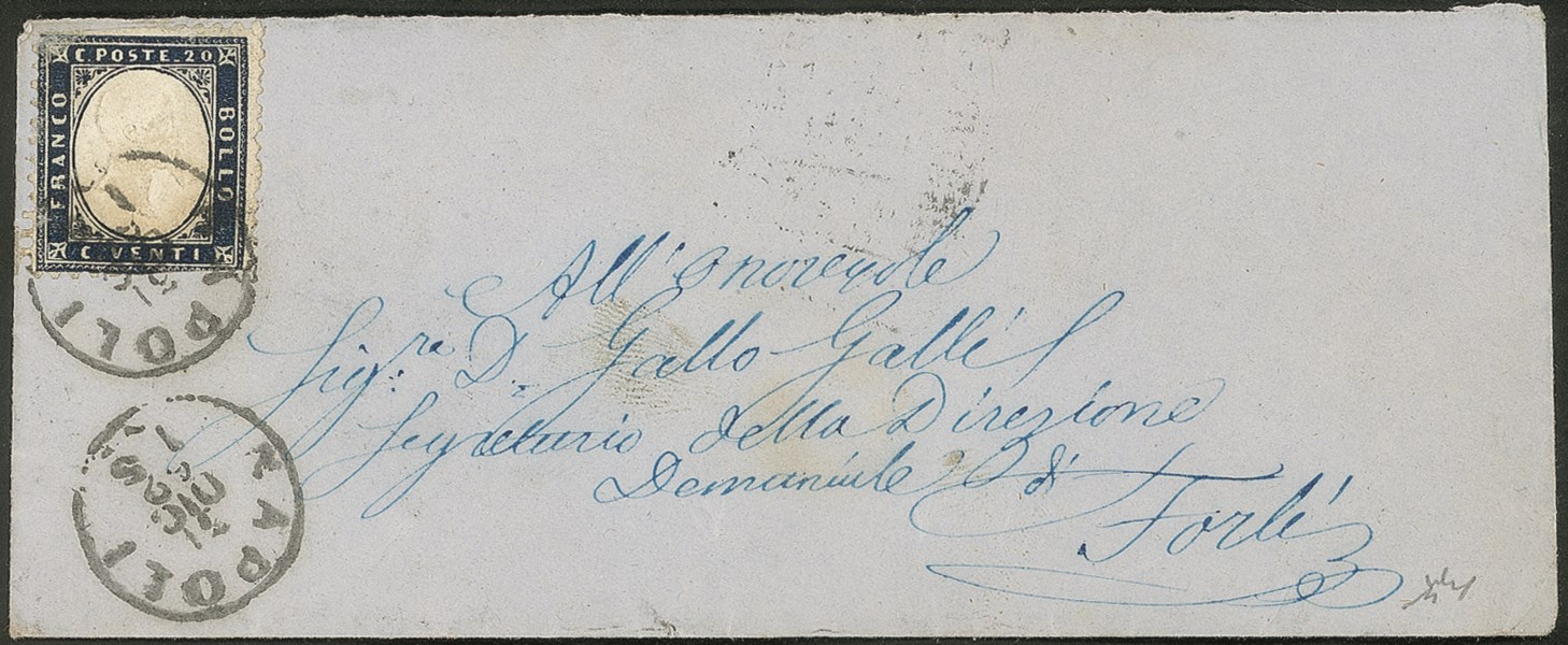Da Napoli 31 DIC 62 a Forlì - ultimo giorno della tariffa da 20 cent sostituita dal 1 gennaio 1863 da quella unificata di 15 cent - rara - Firma Chiavarello