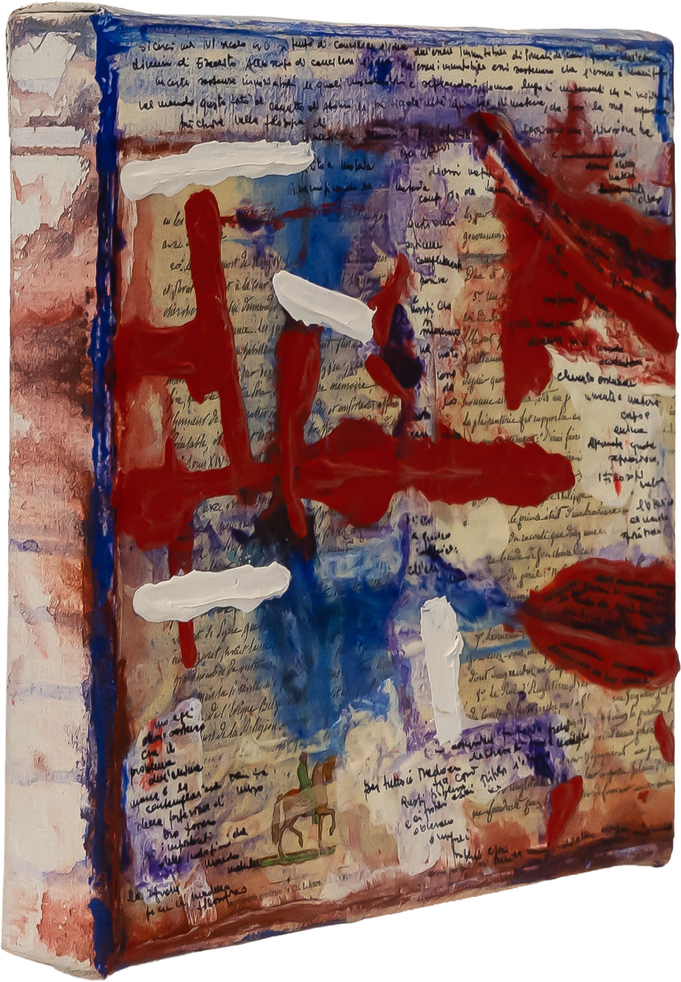 Acrilico, collage del 1700, olio e testi scritti su tela