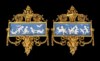 Pair of bronze gilded friezes decorated with festoons, racemes and ram's heads, with wedgwood porcelain inserts decorated low relives of puttos