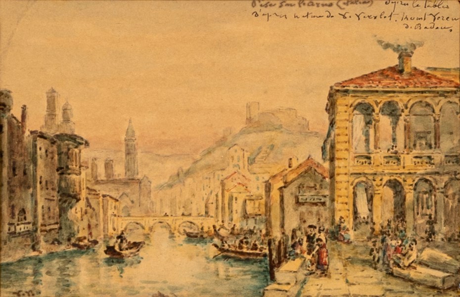 School of early XX century - View of Verona with the ancient Ponte Nuovo