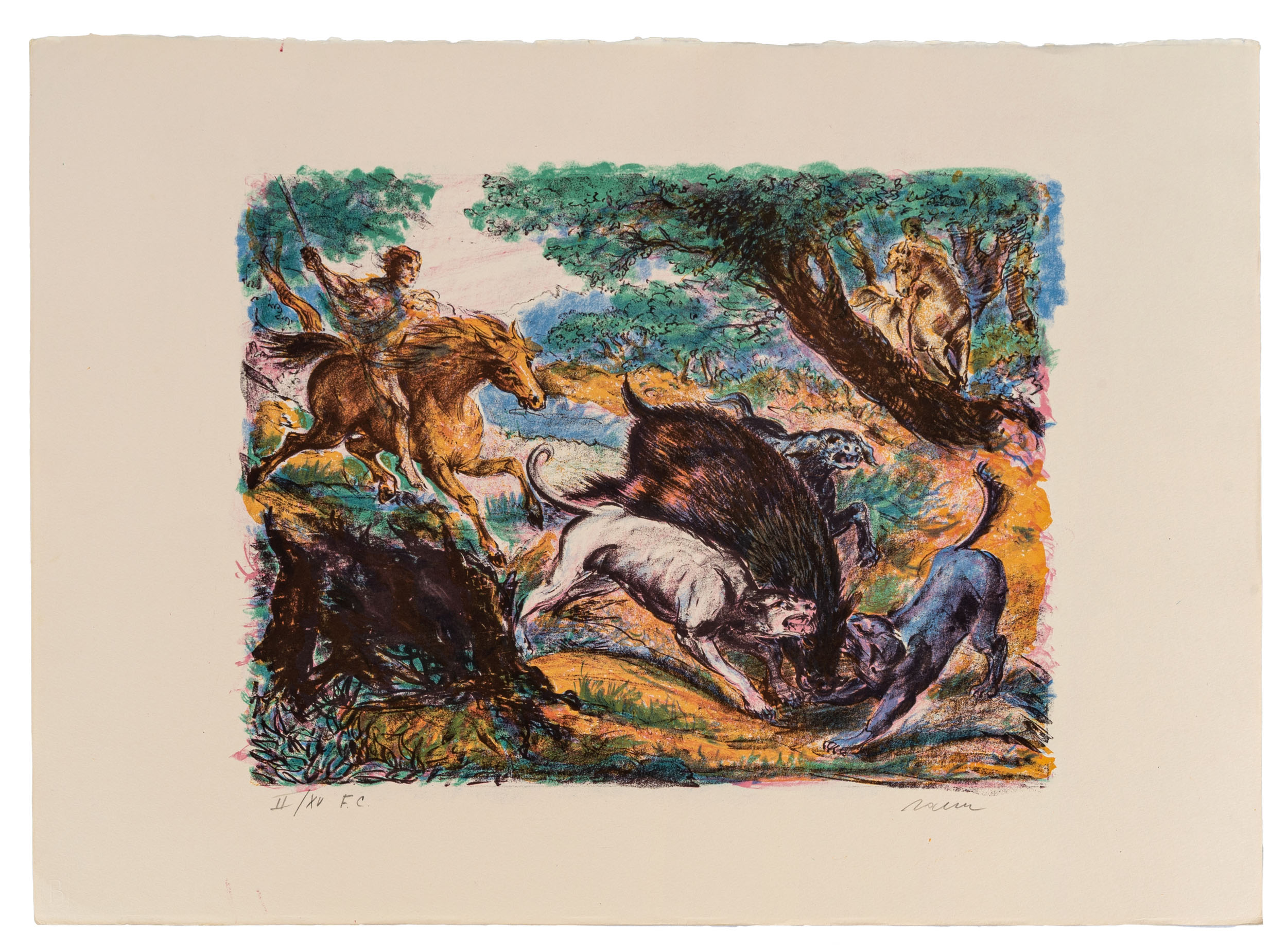 Folder containing 6 litographs, ed. II/XV from an edition of 125 examples 99 of which in Arabic numerals on handmade paper, 7 ad personan for the author, the editor and the printers, 4 on Japon paper accompanied by the series on handmade normal paper, 15 out of commerce for gifts , Carlo Bestetti - Edizioni d'Arte, Rome