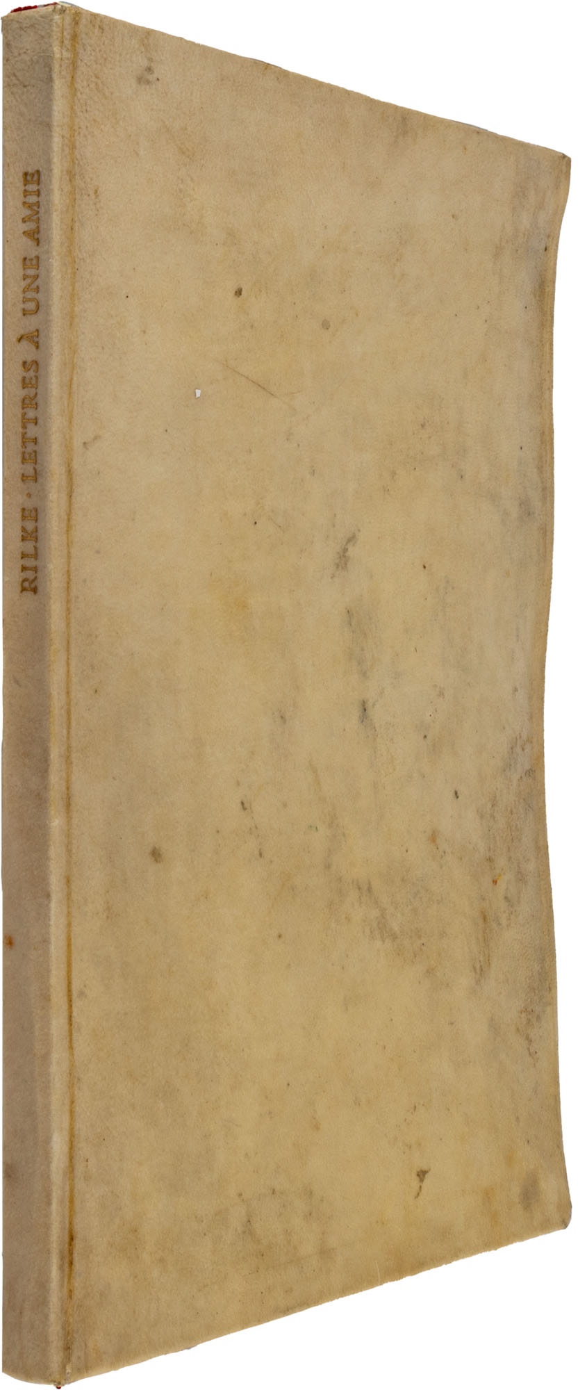 Legatura in piena pergamena, titolo oro al dorso, in barbe