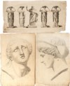 Bottom: Roman school (?) of the 19th century - Two sculpture heads, 44 x 28.5 cm