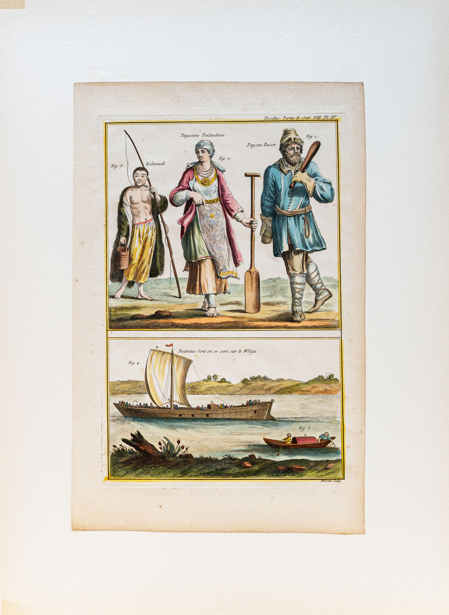 B. Milsan - Six copper hand-coloured engravings depicting fishes and fishing