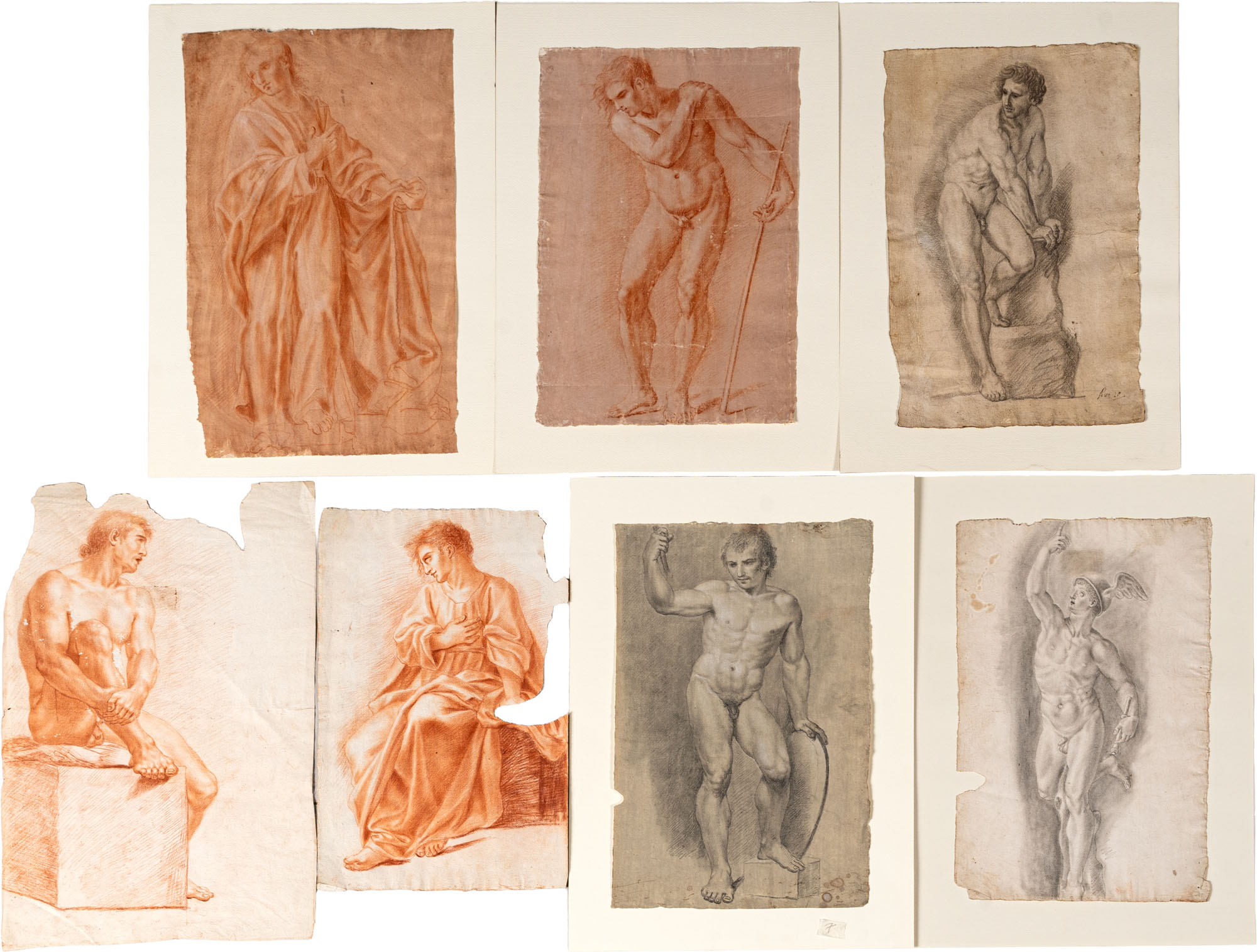 Roman school (?) of the 19th century - Series of seven nude studies and a study from Giambologna's Mercury