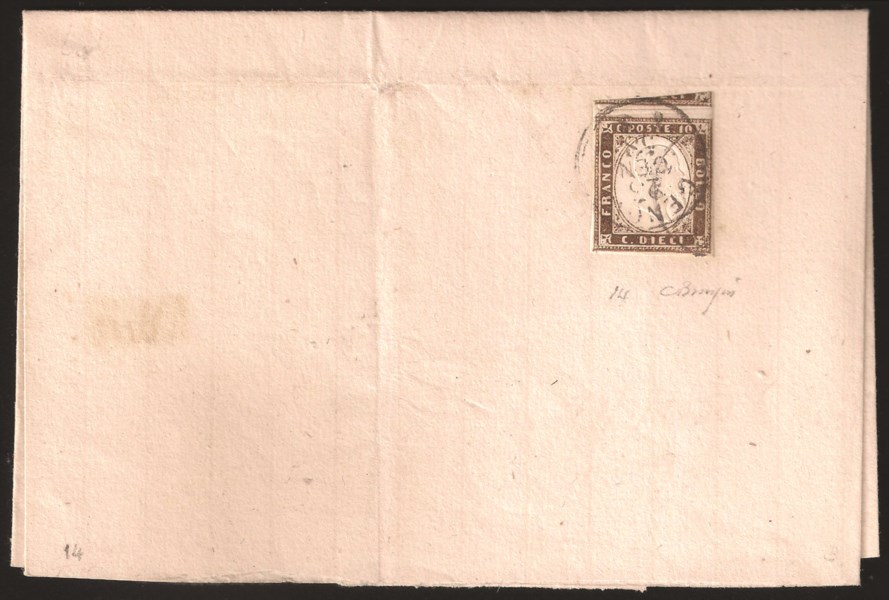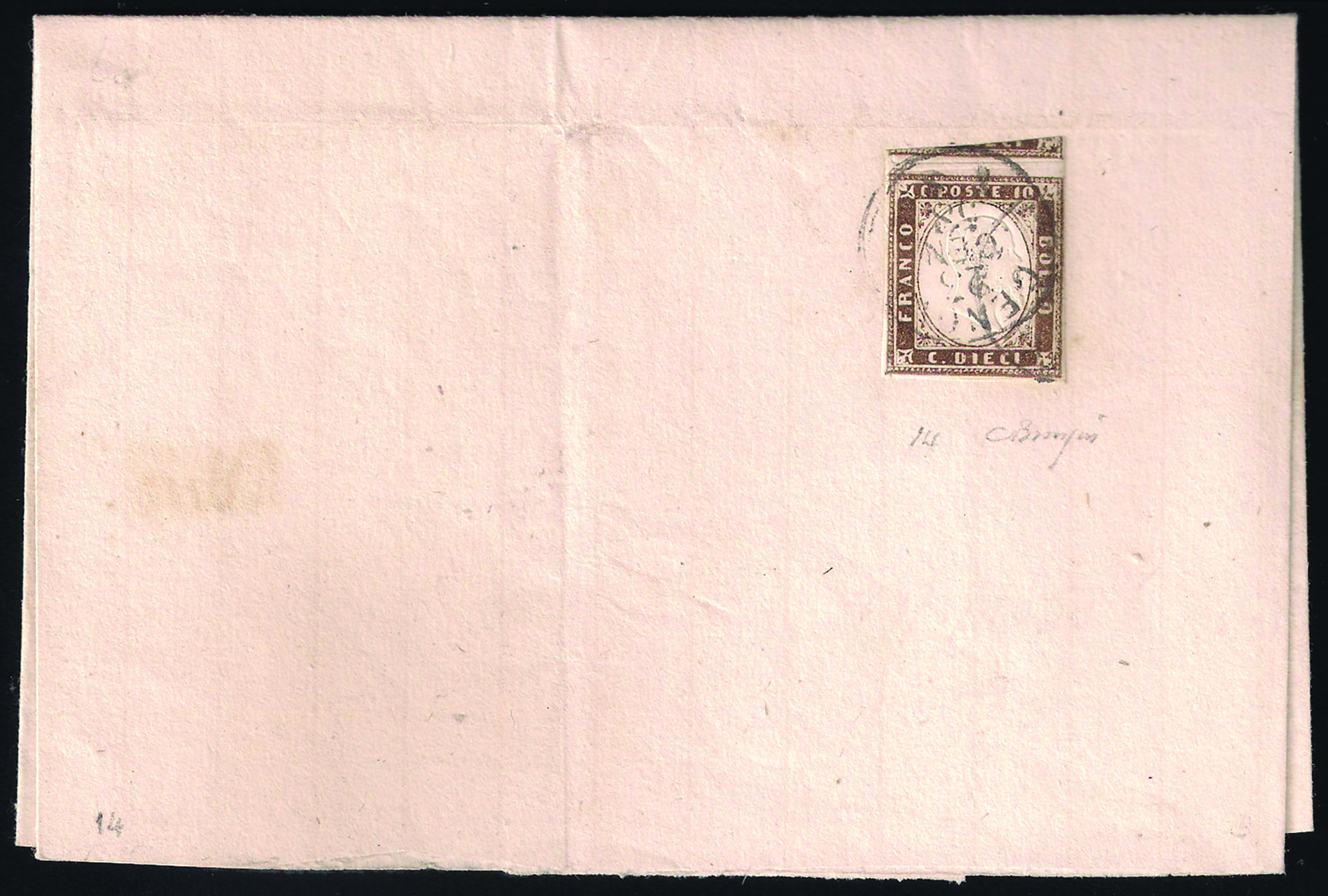 Antichi Stati Italiani - Sardegna - Lettera sottofascia affrancata con c.10 terra d'ombra (14)