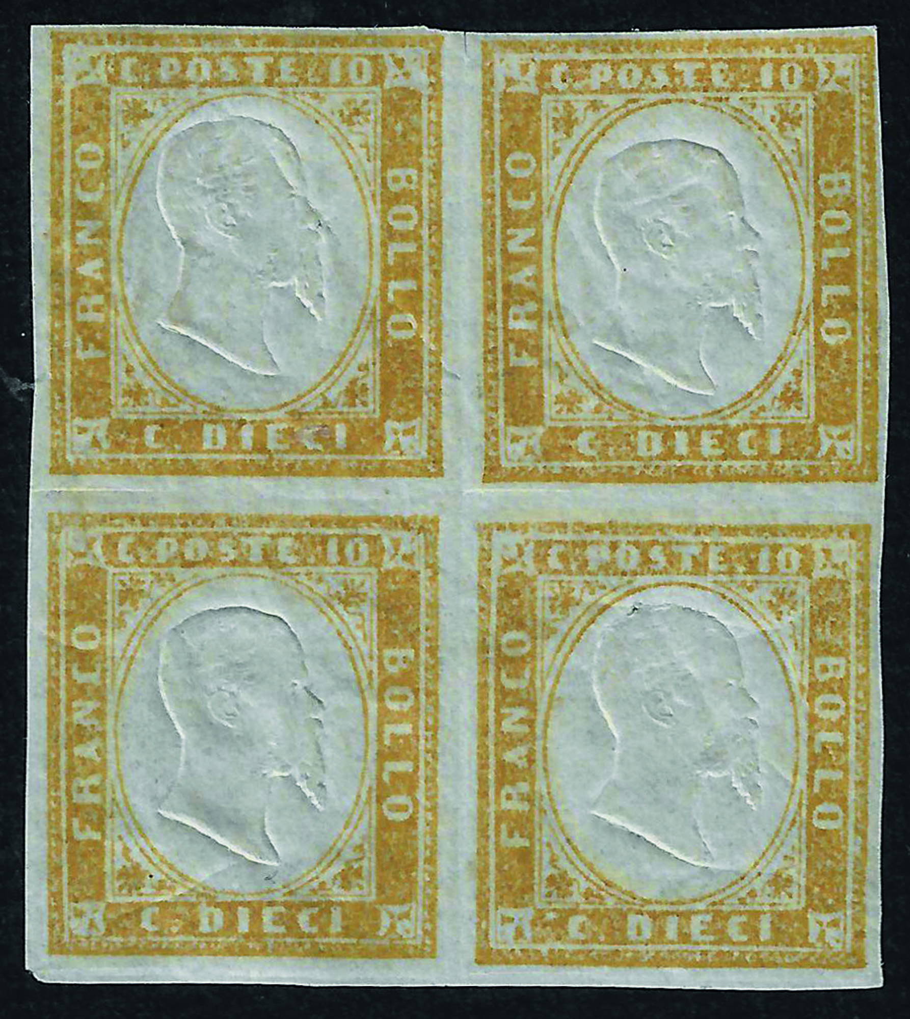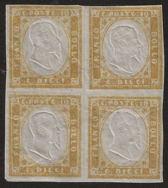 Antichi Stati Italiani - Sardegna - Quartina c.10 giallo ocra (14Dd)