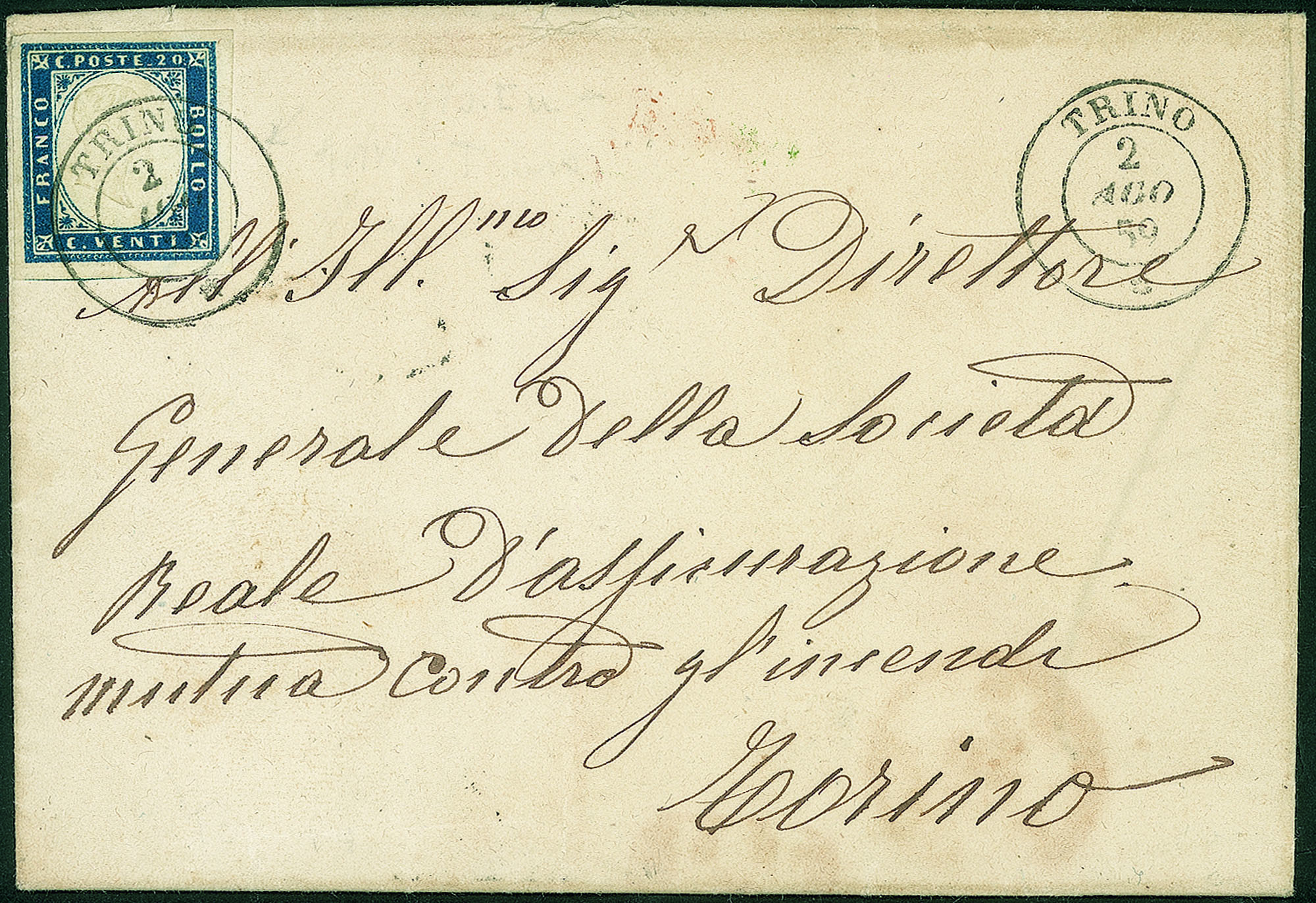 Antichi Stati Italiani - Sardegna - Lettera da Trino 2.8.59 recante 20 cent (15B)