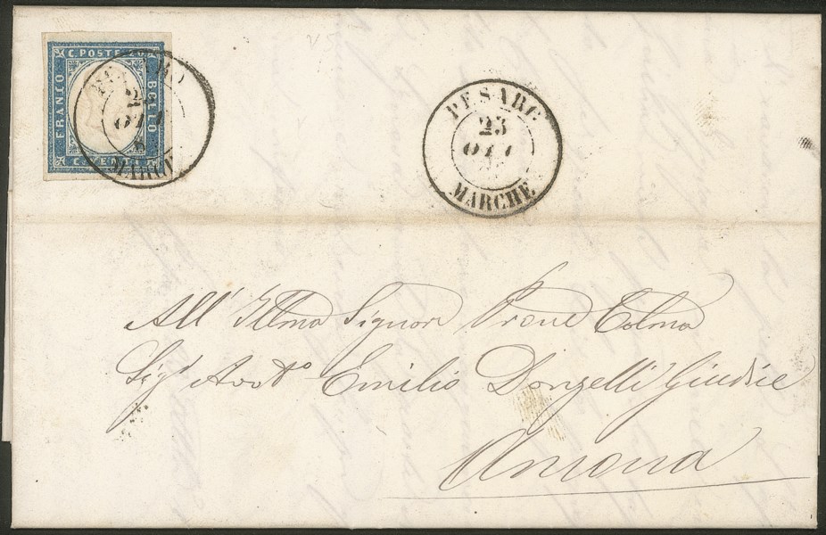 Antichi Stati Italiani - Sardegna - Lettera da Pesaro 23.10.61