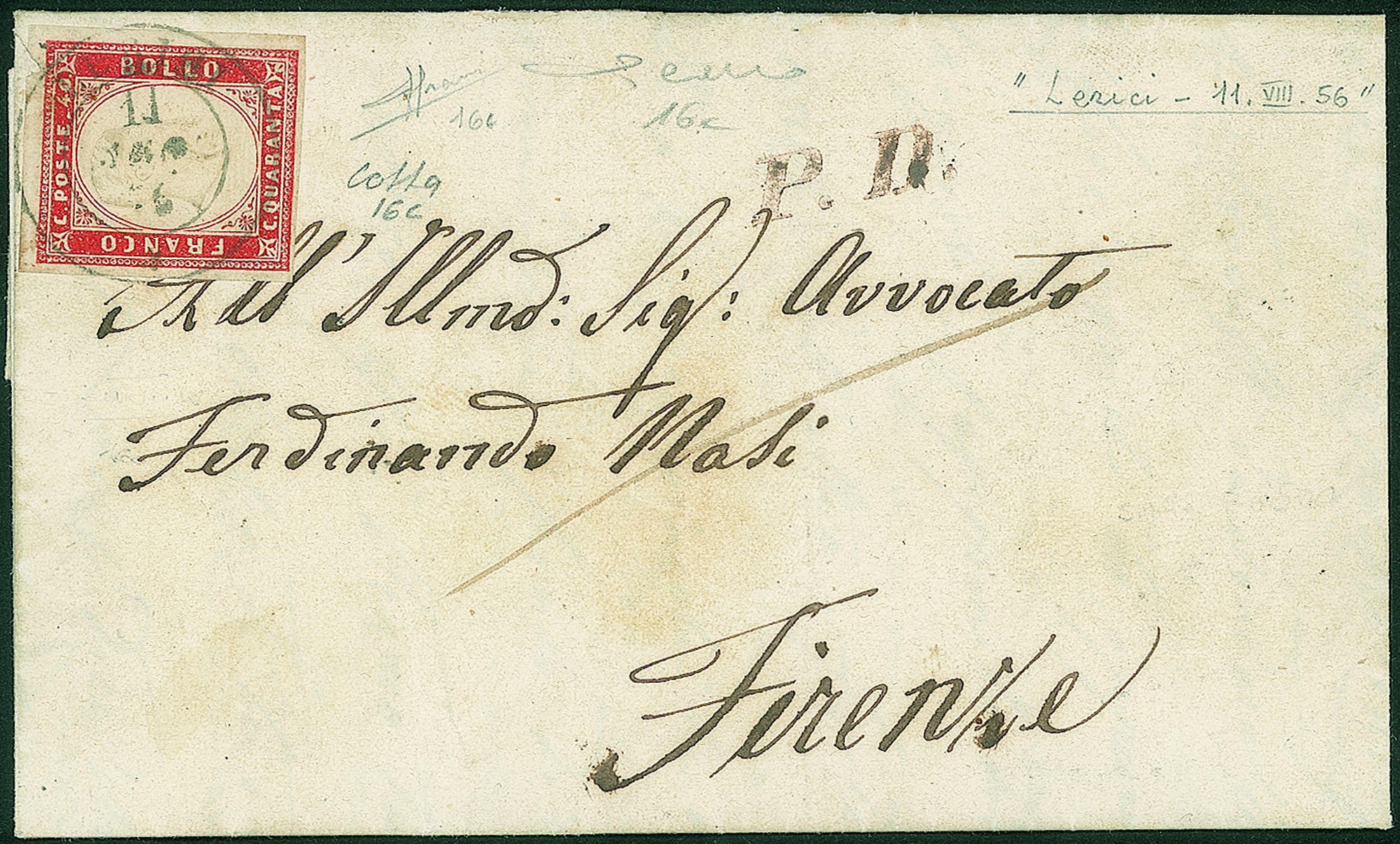 Antichi Stati Italiani - Sardegna - Lettera da Lerici 18.8.56 (DC - P.ti 6)