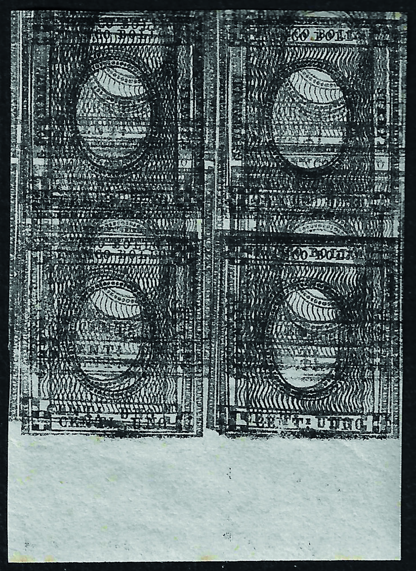 Con bordo di foglio inferiore con gomma, privo dell'impronta a secco e con stampa multipla del nero