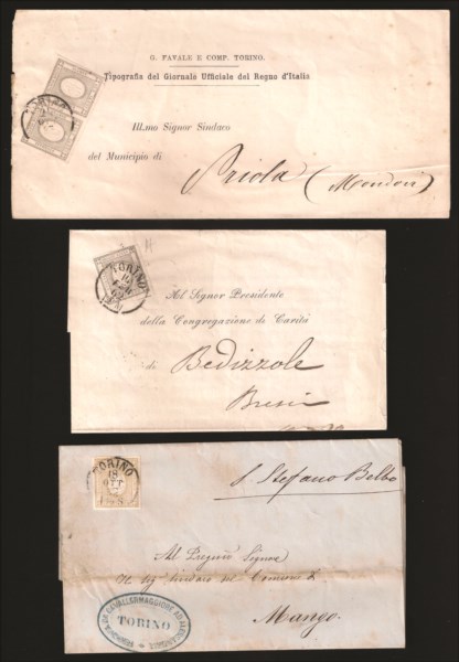 Antichi Stati Italiani - Sardegna - Tre missive in tariffa per stampati da due centesimi