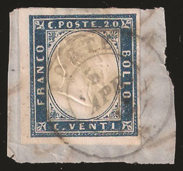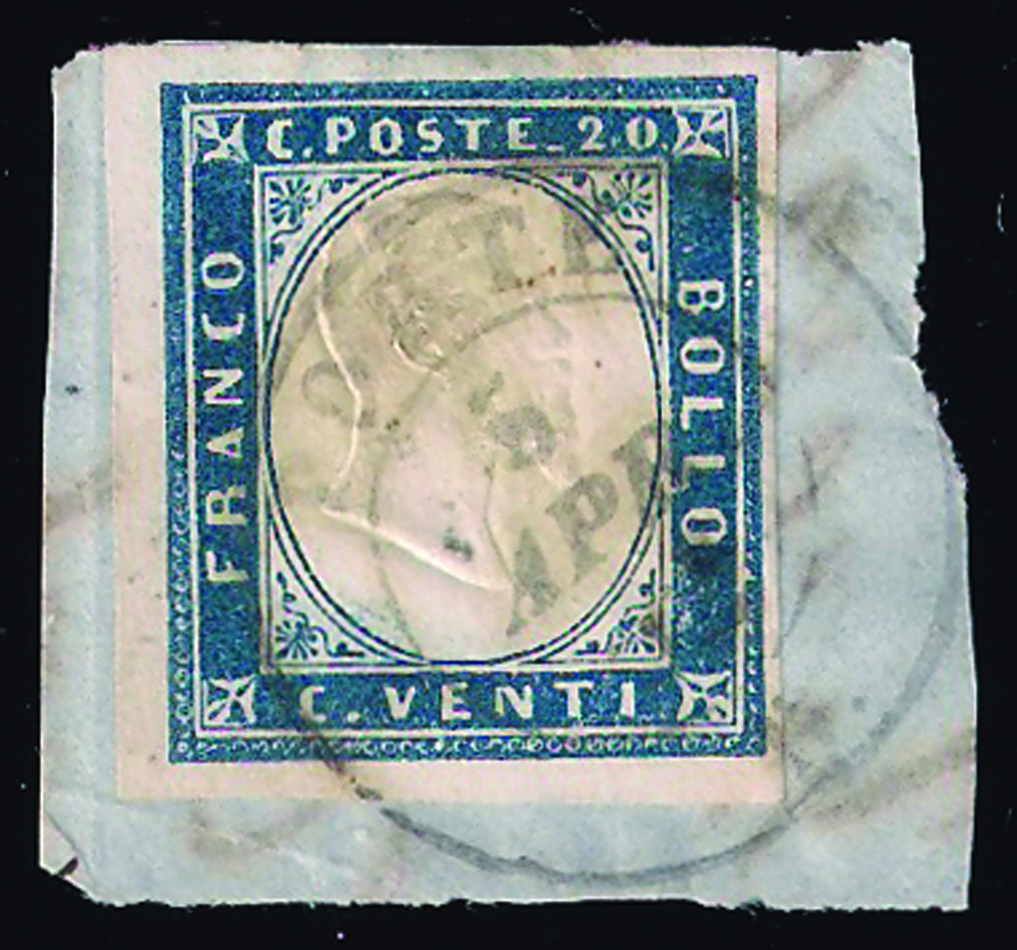 Su frammentino con c.20 celeste (15Da) cert. Bottacchi