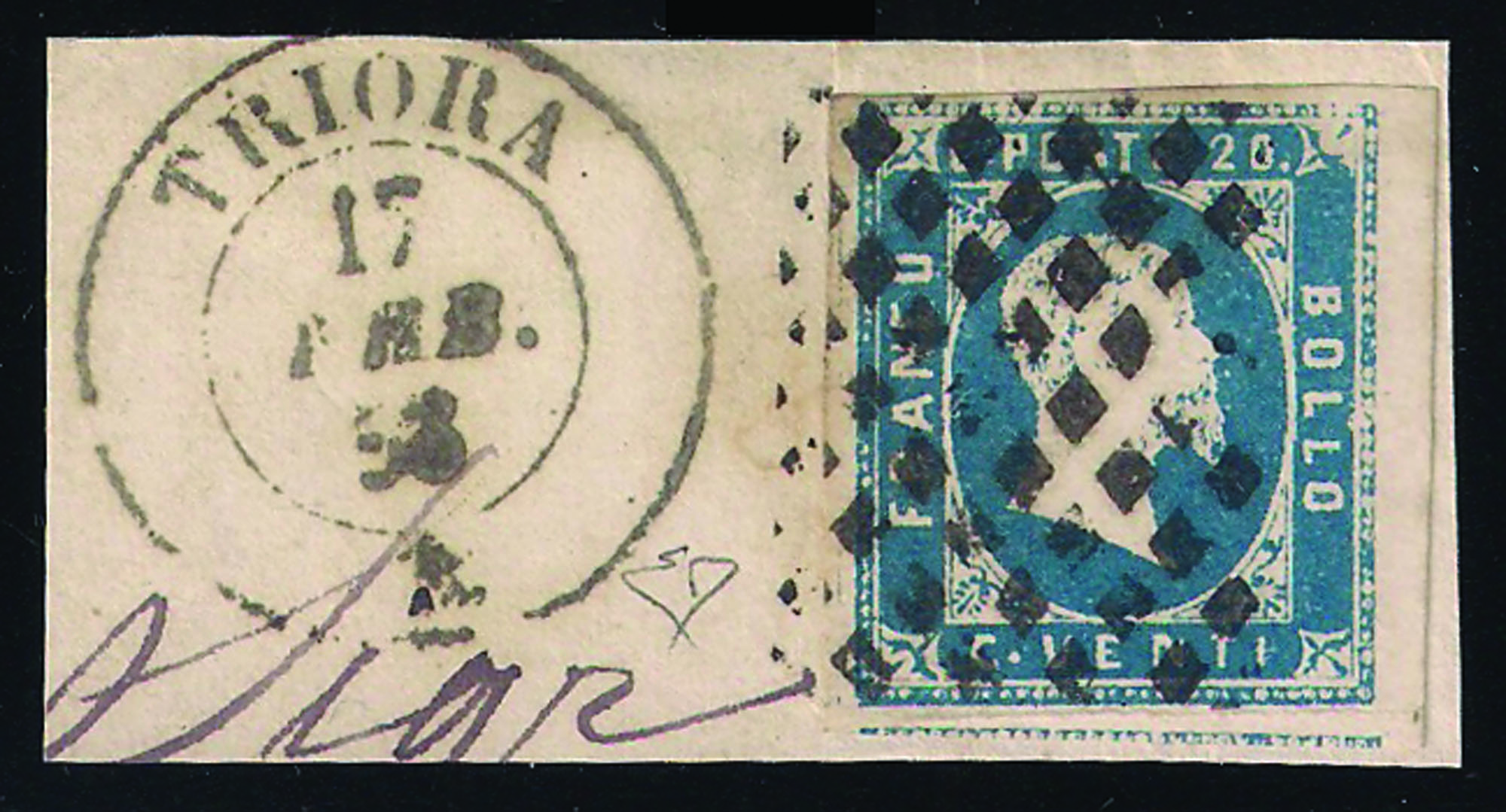 Antichi Stati Italiani - Sardegna - Annullamenti - Frammento con c.20 azzurro (2)
