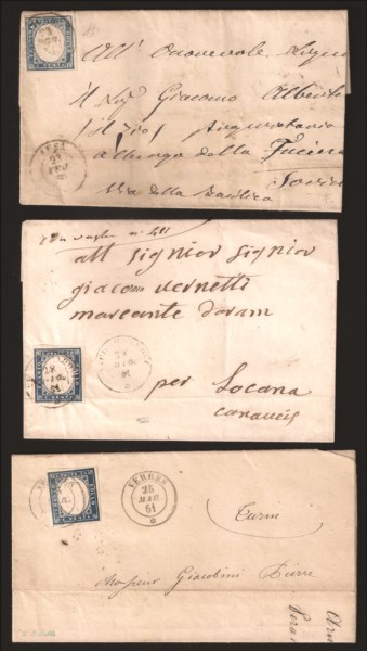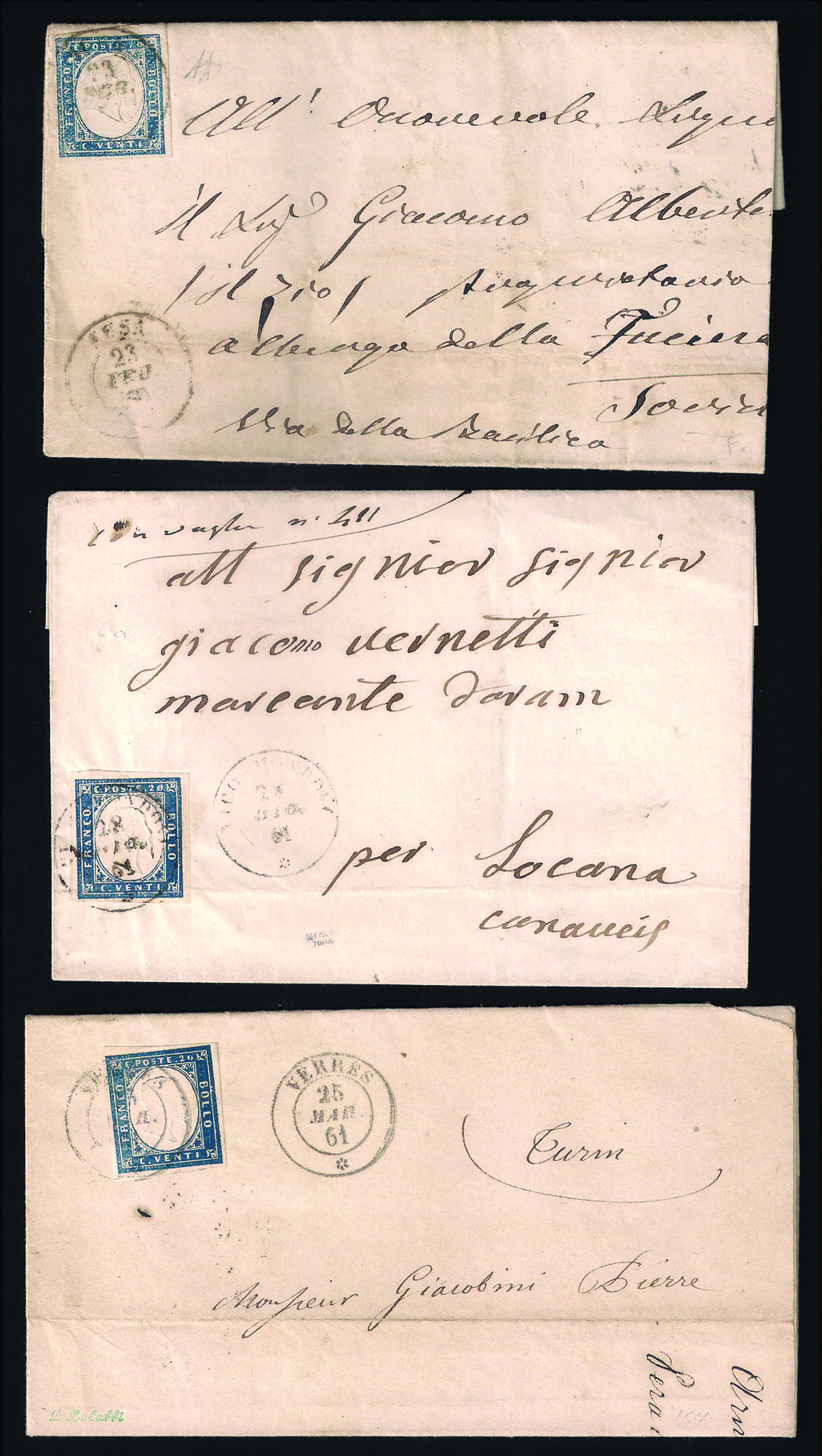 Antichi Stati Italiani - Sardegna - Annullamenti - Lotto di tre lettere con annulli di SUSA, VERRES e VICO MONDOVI