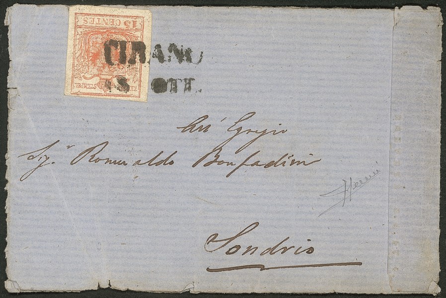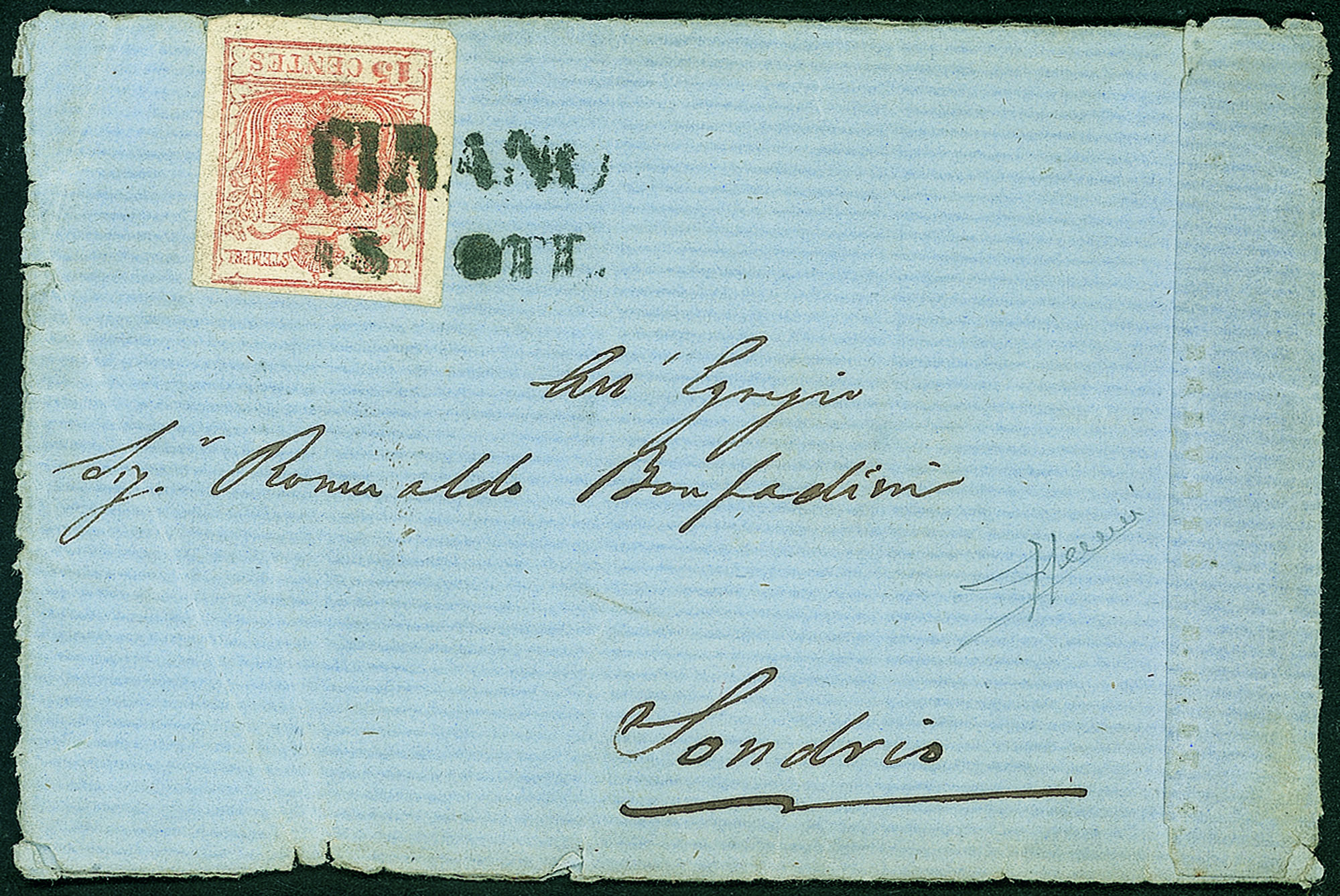 Antichi Stati Italiani - Lombardo Veneto - Eccezionale busta inviolabile da Tirano (SD - P.ti 6)