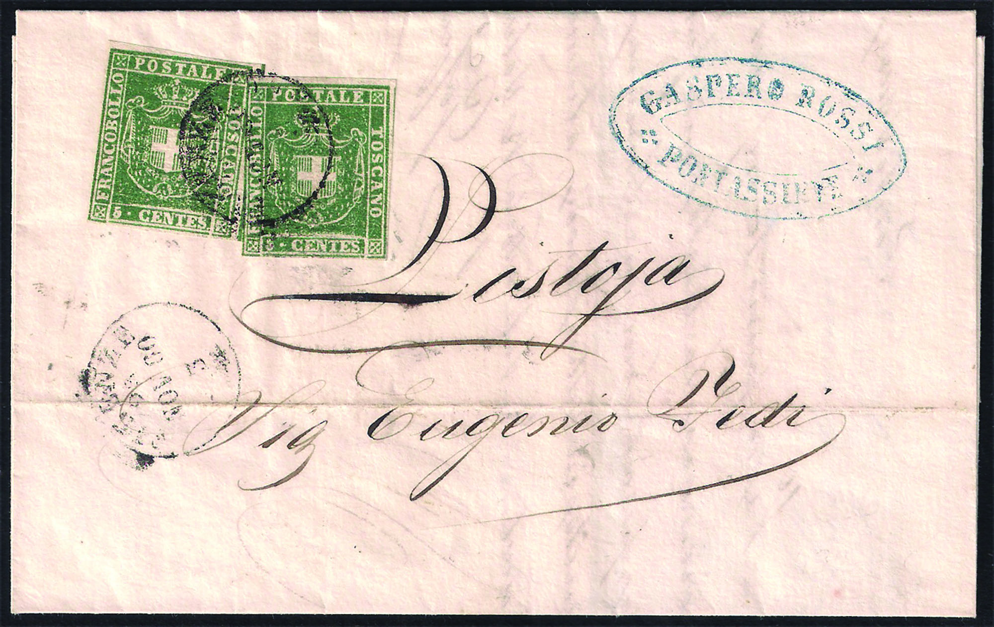 Antichi Stati Italiani - Toscana - Governo Provvisorio - Lettera con due esemplari c.5 verde (18)