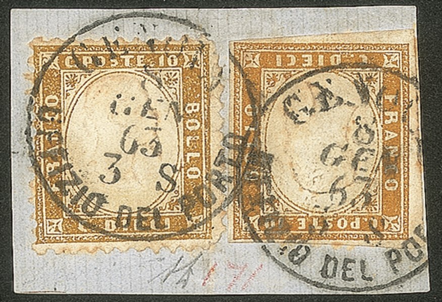 Del Porto recante 10 cent dentellato (1f) + 10 cent Sardegna (14De) - mista di pregio - AD