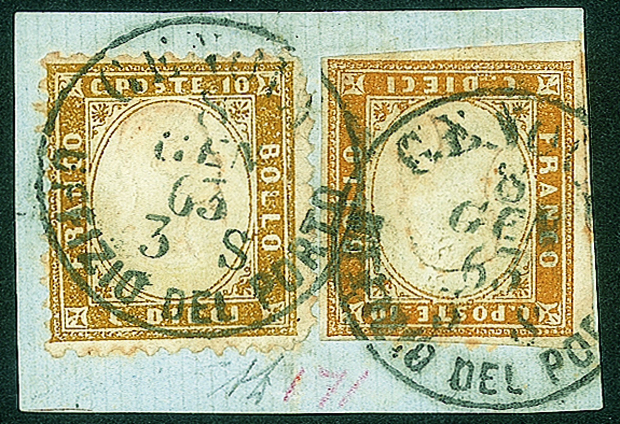 Regno - Vittorio Emanuele II - Raro frammento da Genova/Uffizio