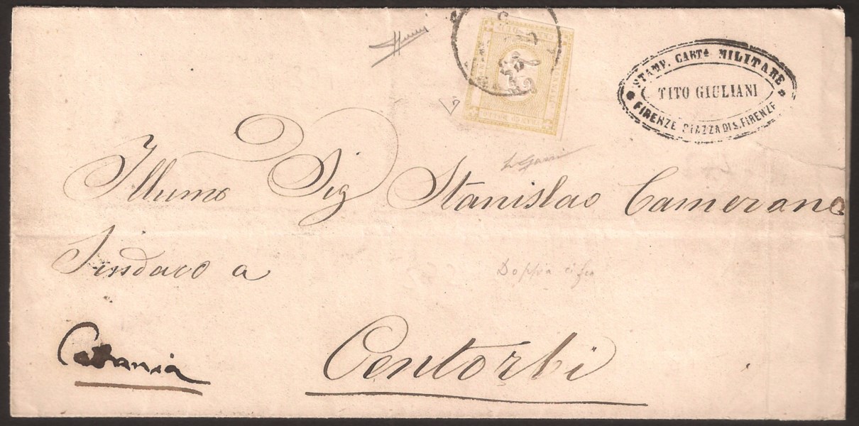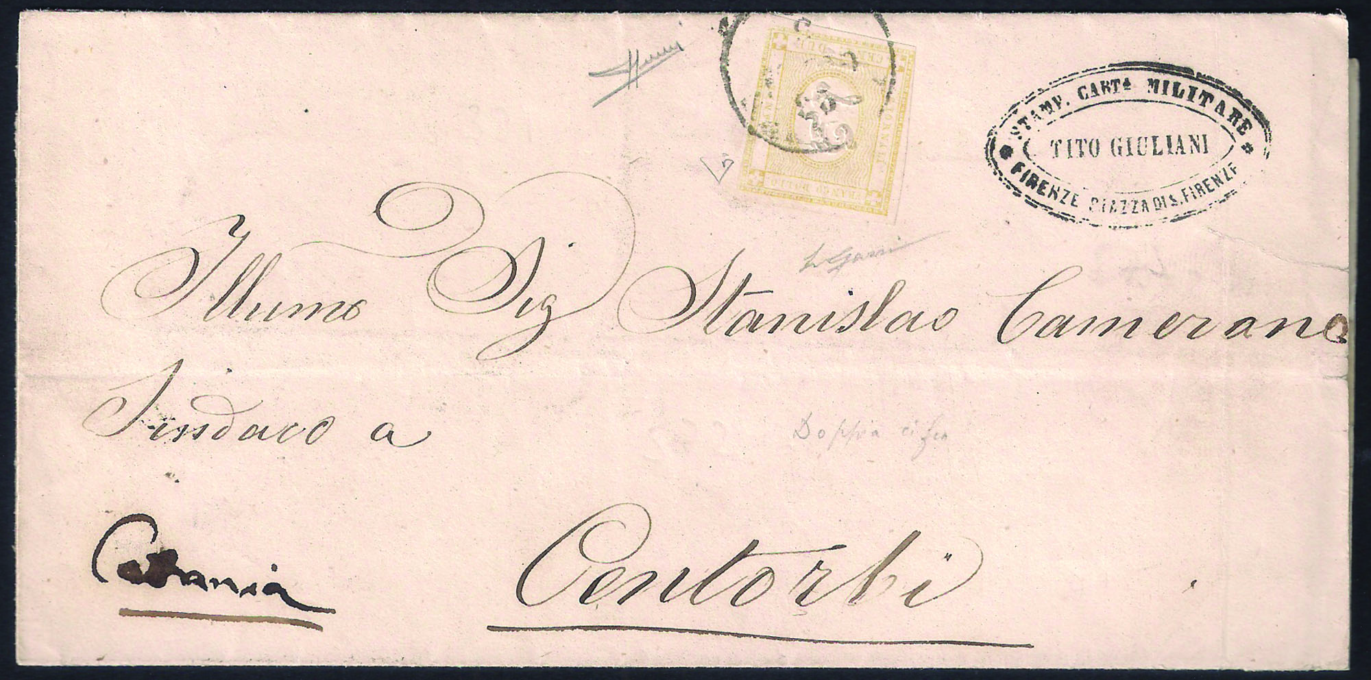 Regno - Vittorio Emanuele II - Lettera con c.2 giallo chiaro