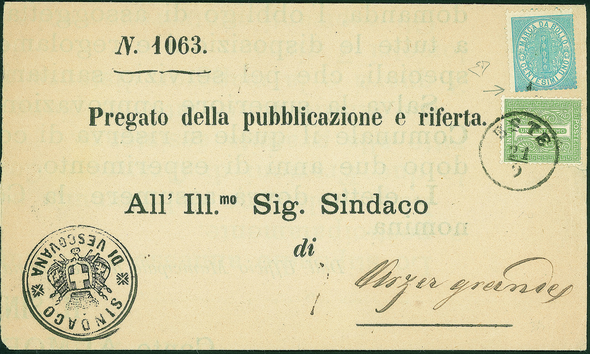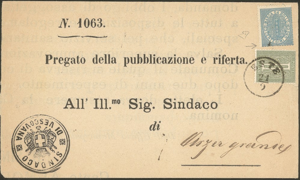 Regno - Vittorio Emanuele II - Circolare affrancata con 1 cent DLR (L14)