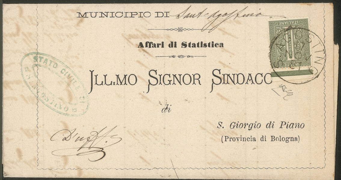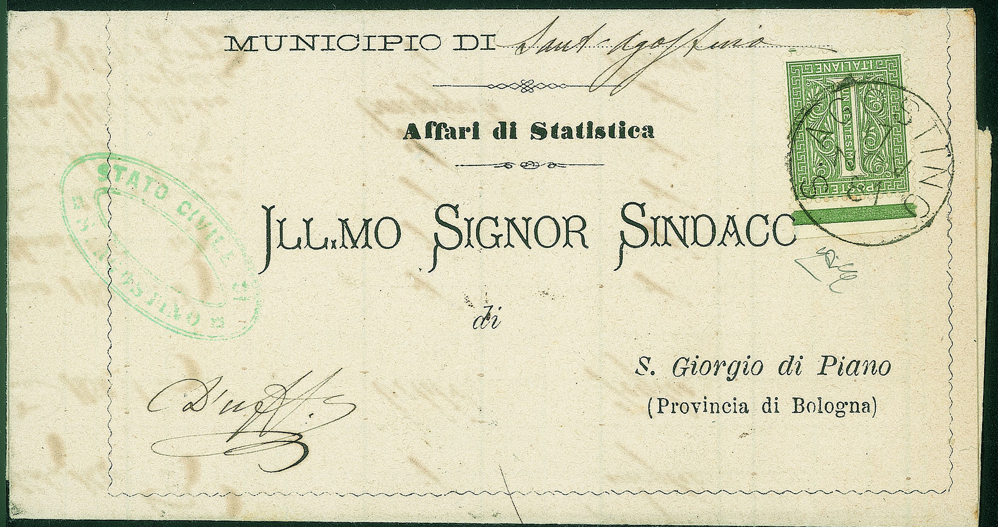 Con bordo di foglio superiore con sbarra tipografica in verde - modulo da S. Agostino a S. Giorgio di Piano del 17.11.81 - cert. E. Diena