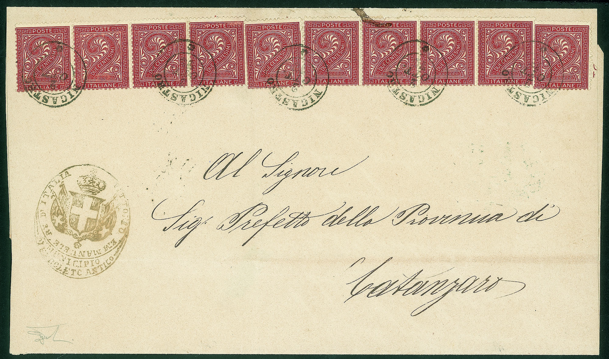 Regno - Vittorio Emanuele II - Due strisce di quattro + due esemplari singoli del 2 cent (T15)